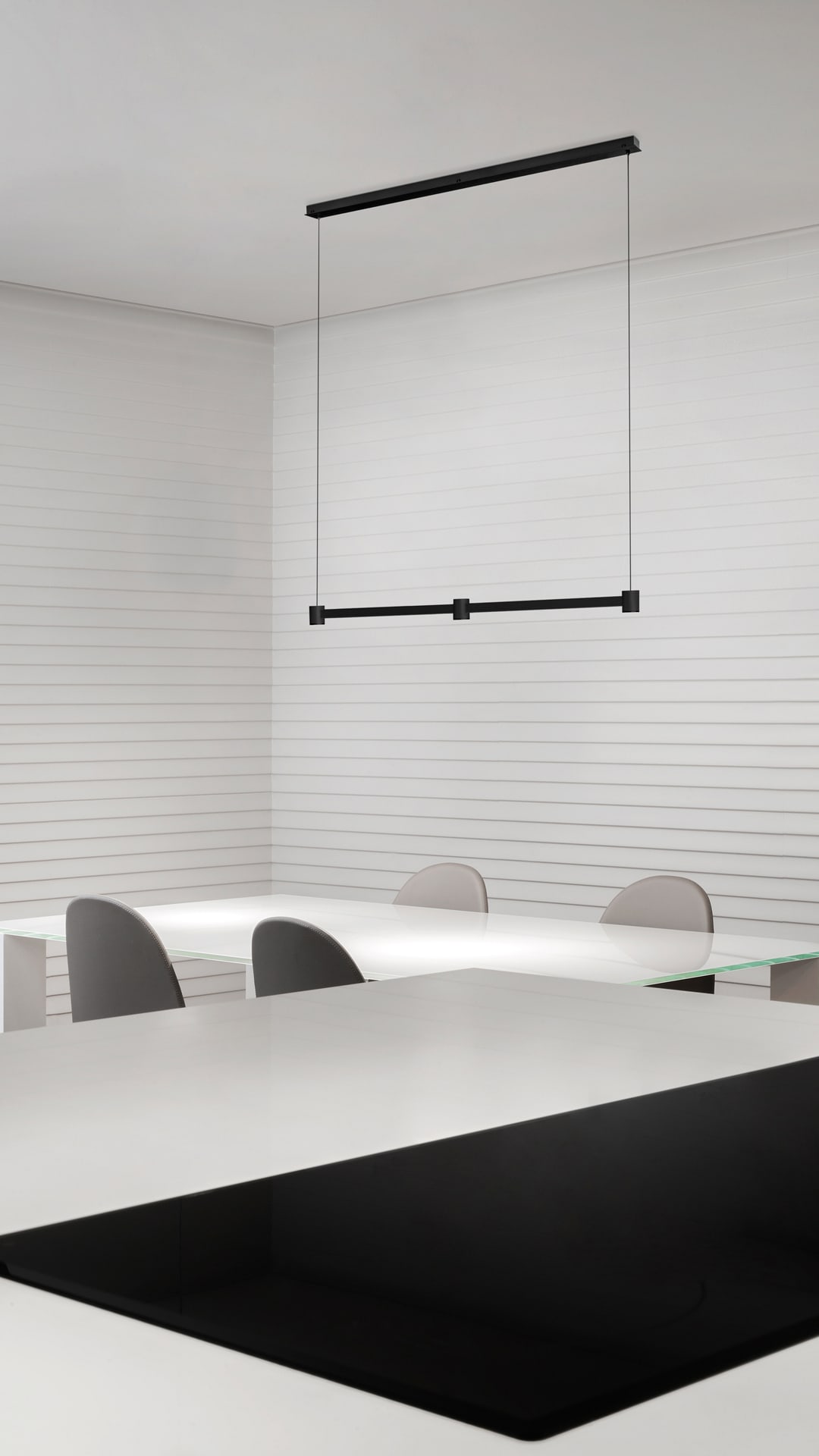 Art Direct & Indirect - Modular - Surface Confort visuel optimal Câble suspension + allimentation Câbles ultra-fin (1mm) Différentes finitions de couleurs. Intersection parfaite Minimaliste Même esthétique ON/OFF Sculpturale Effet « The Invisible Black »