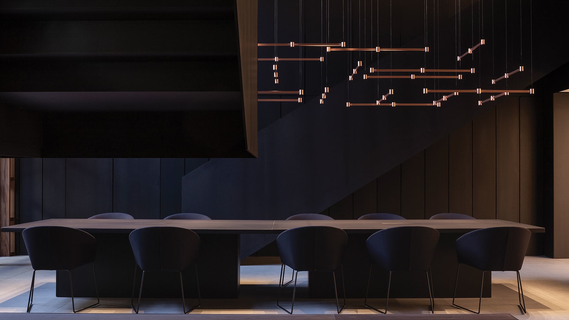 Art Direct & Indirect - Modular - Surface Confort visuel optimal Câble suspension + allimentation Câbles ultra-fin (1mm) Différentes finitions de couleurs. Intersection parfaite Minimaliste Même esthétique ON/OFF Sculpturale Effet « The Invisible Black »