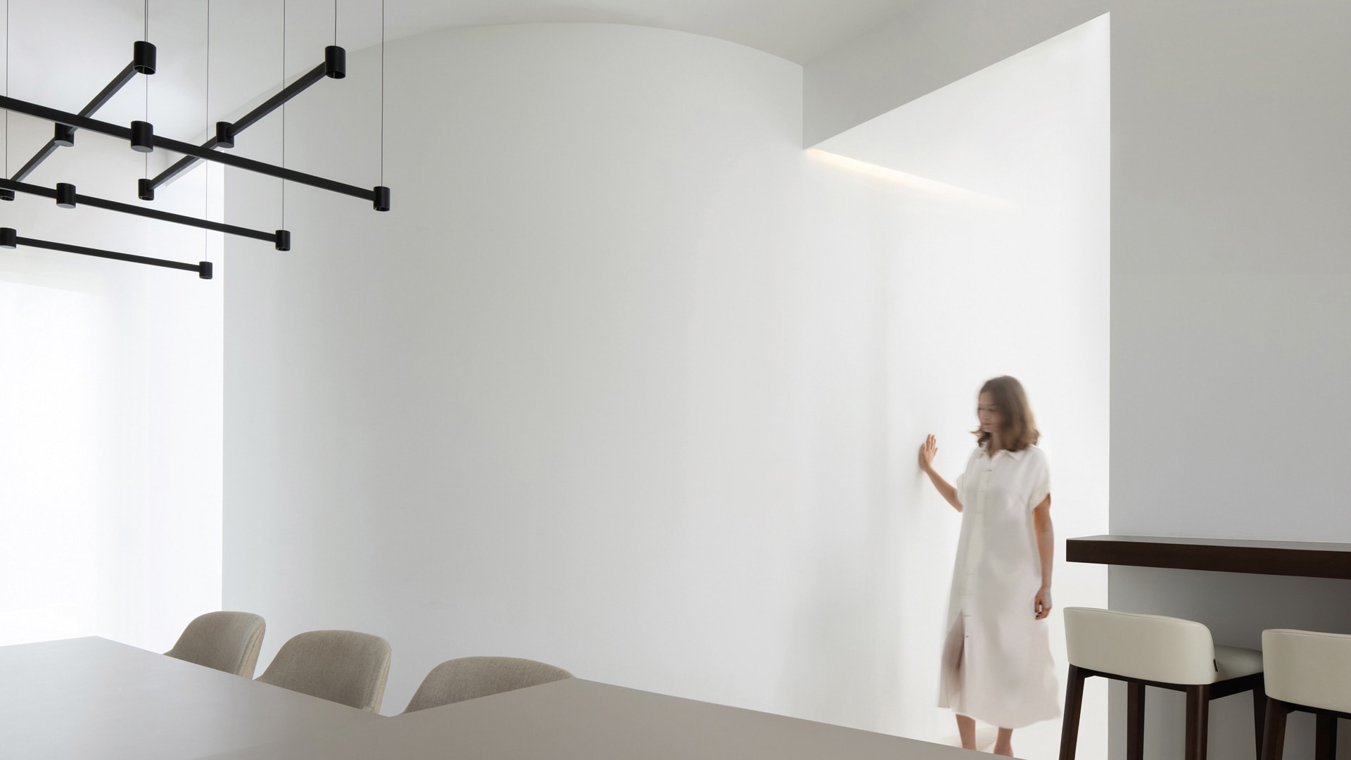 Art Direct & Indirect - Modular - Surface Confort visuel optimal Câble suspension + allimentation Câbles ultra-fin (1mm) Différentes finitions de couleurs. Intersection parfaite Minimaliste Même esthétique ON/OFF Sculpturale Effet « The Invisible Black »
