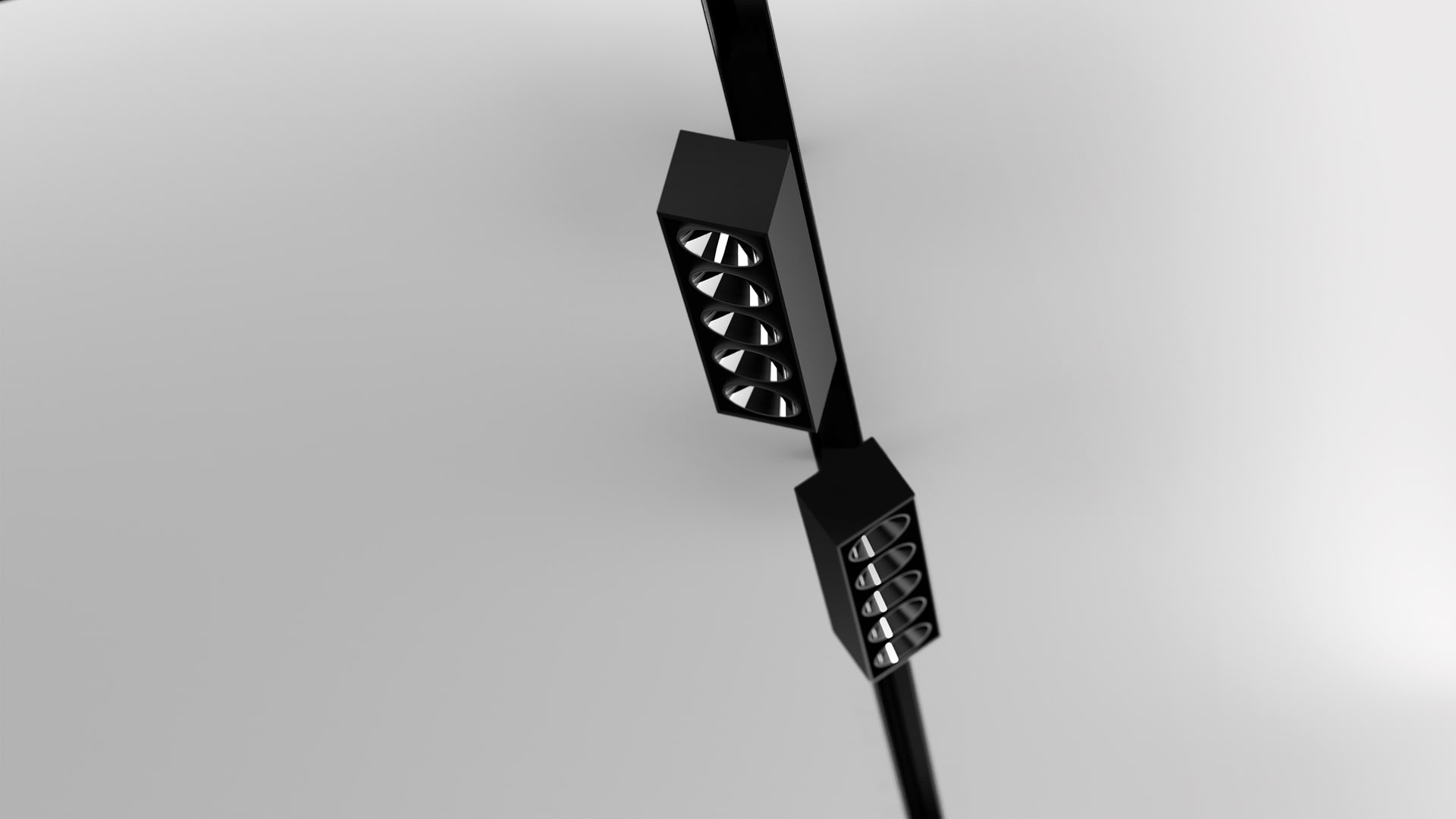 . Invisible Black peut tourner sur son axe 360° et basculer 90° ajoute une nouvelle fonction pivotante au rail 48V
