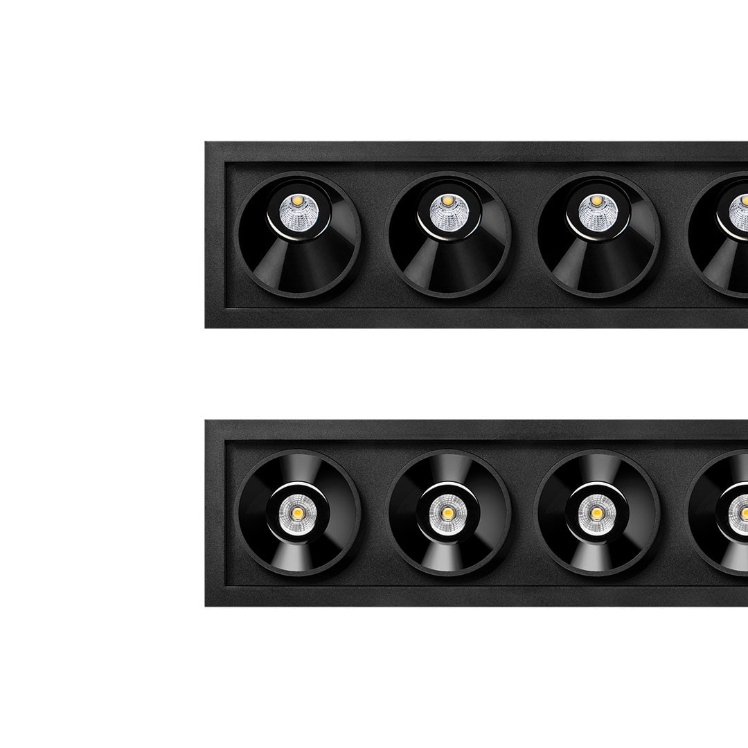Disponible dans toutes les versions de Black Foster : recessed, trimless, surface, suspension et custom. Effet « The Invisible Black » : la source de lumière est pratiquement invisible. Il conserve la même esthétique, qu’il soit allumé ou éteint. Éblouissement très faible. UGR minimum. Confort visuel maximum. Éclairage ciblé.