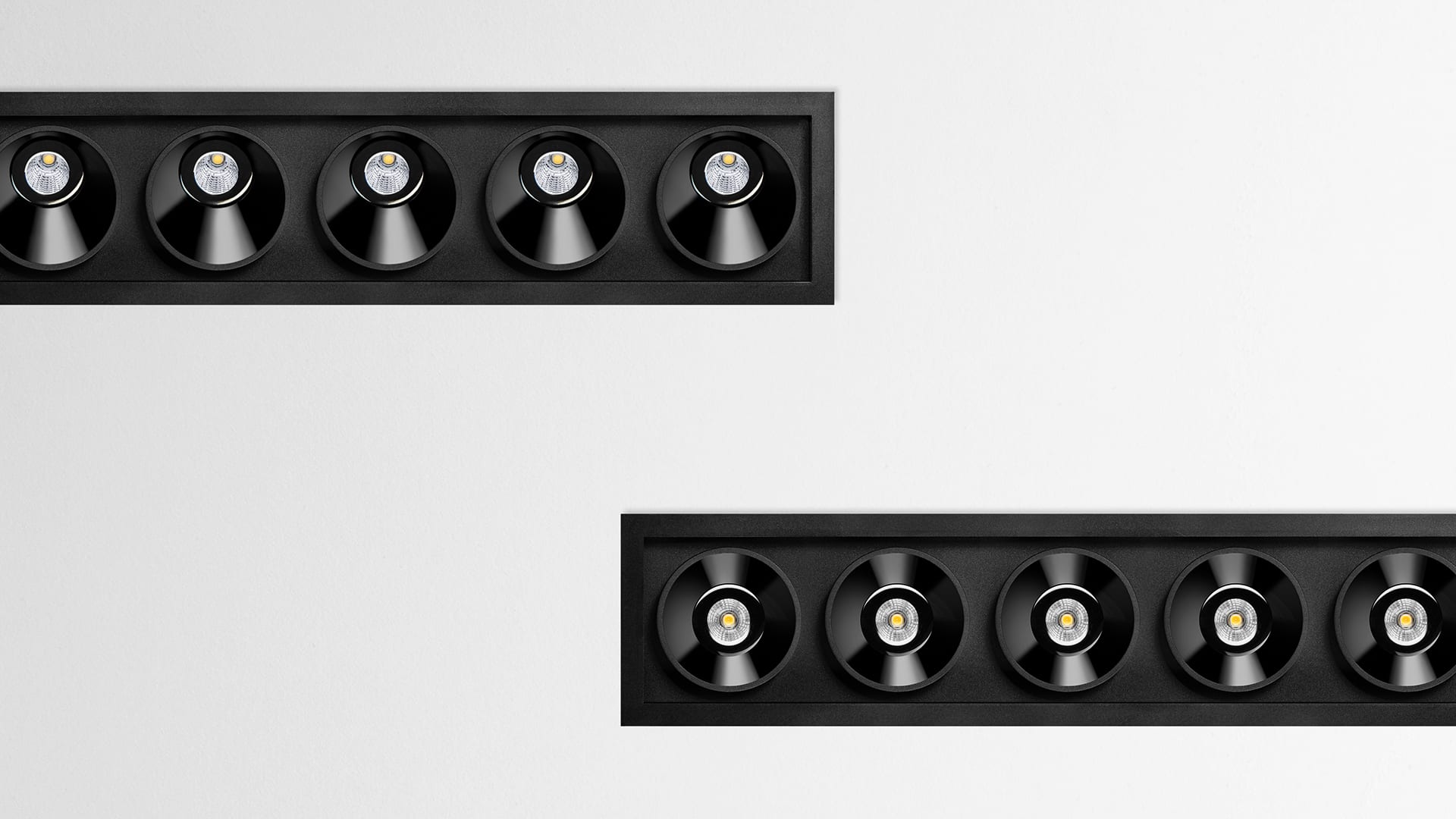 Effet « The Invisible Black » : la source de lumière est pratiquement invisible. Il conserve la même esthétique, qu’il soit allumé ou éteint. Éblouissement très faible. UGR minimum. Confort visuel maximum. Éclairage ciblé.