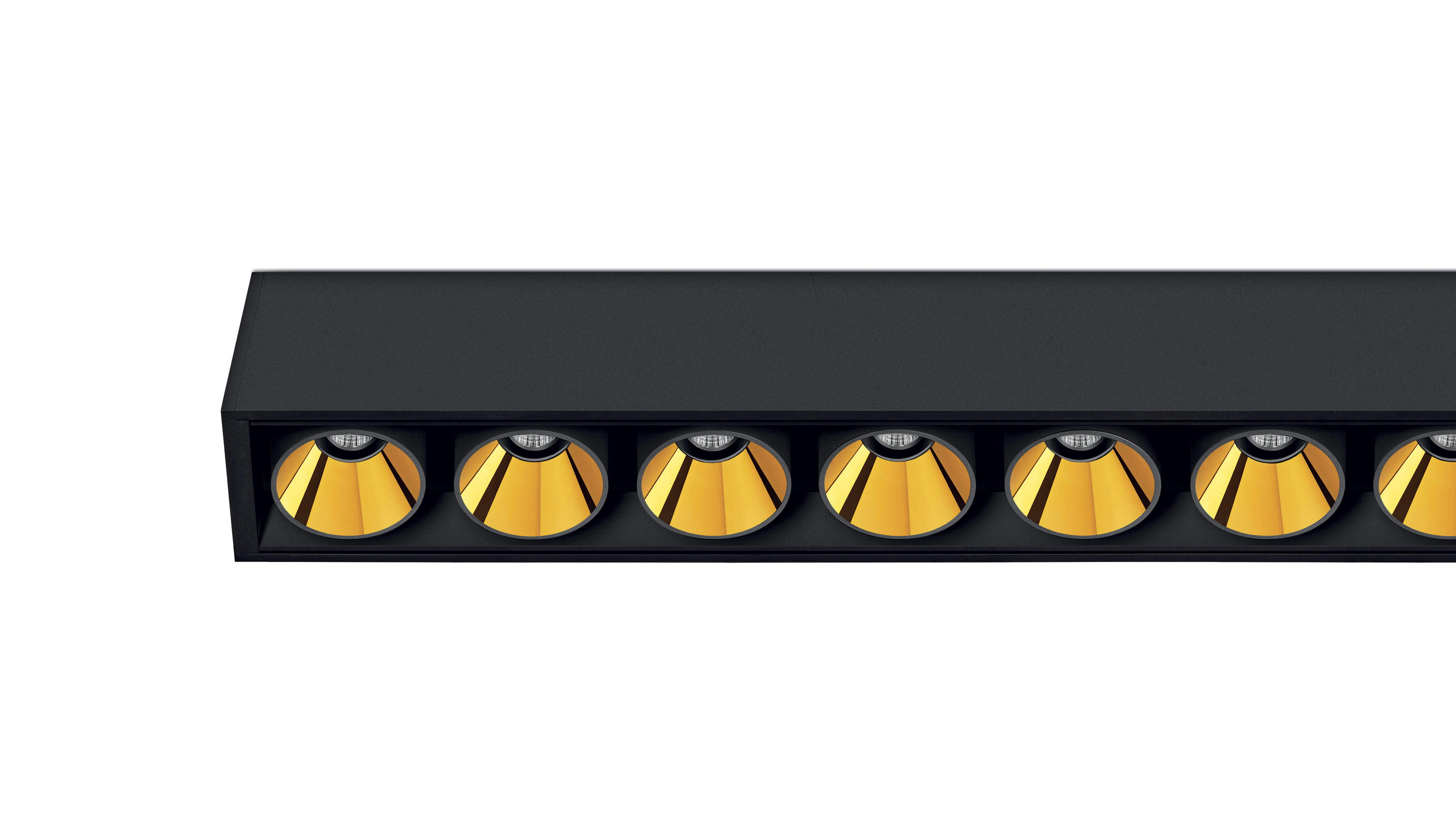 Disponible dans toutes les versions de Black Foster : recessed, trimless, surface, suspension et custom. Il conserve la même esthétique, qu’il soit allumé ou éteint. Éblouissement très faible. UGR minimum. Confort visuel maximum. Effet « The Invisible Black » : la source de lumière est pratiquement invisible.