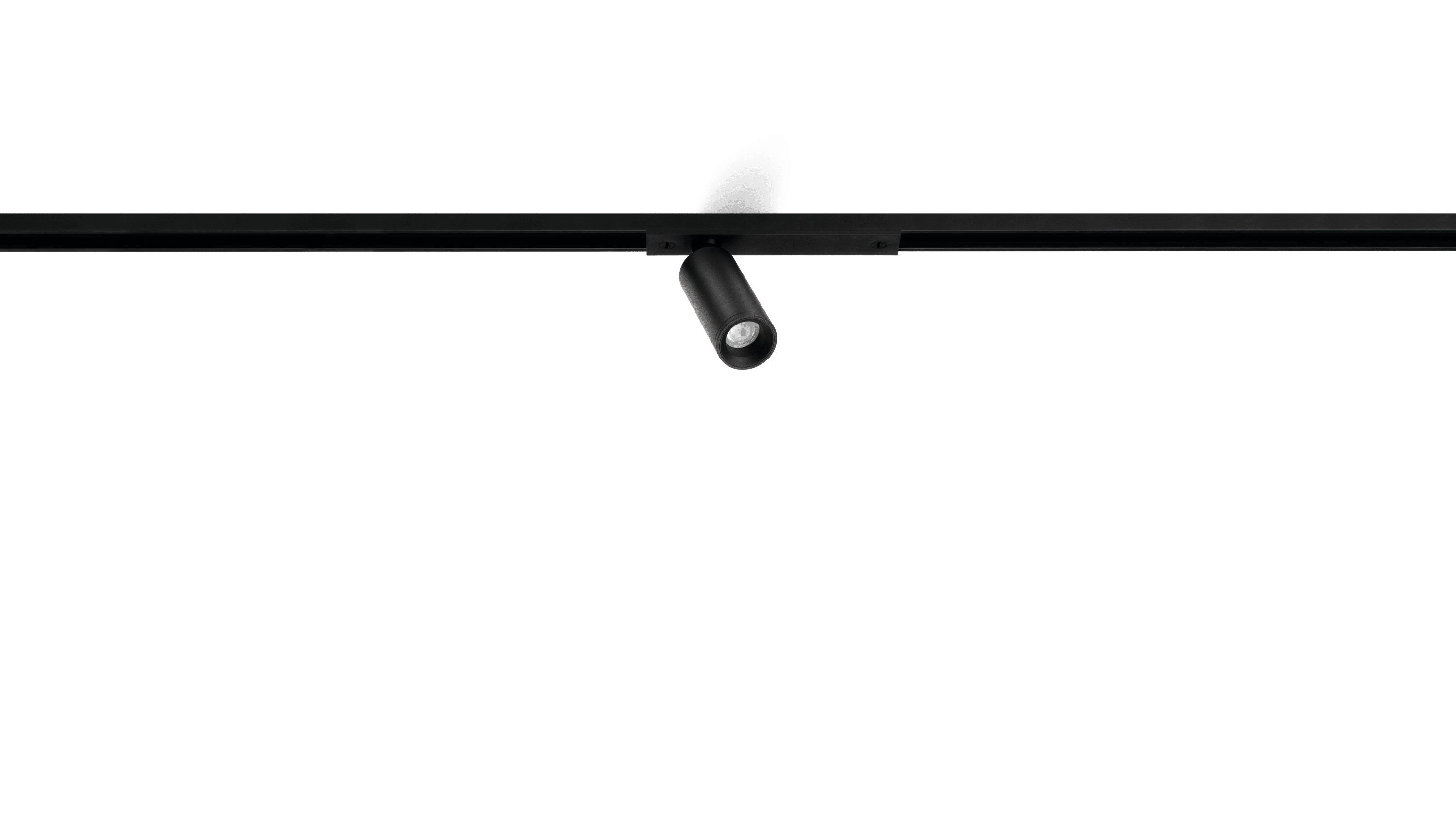 Profilé ultrafin en aluminium anodisé noir mat. Rail en saillie avec effet visuel trimless. Uniformité visuelle, ligne minimaliste noire. Miniaturisation optimale du rail, des luminaires et des composants.