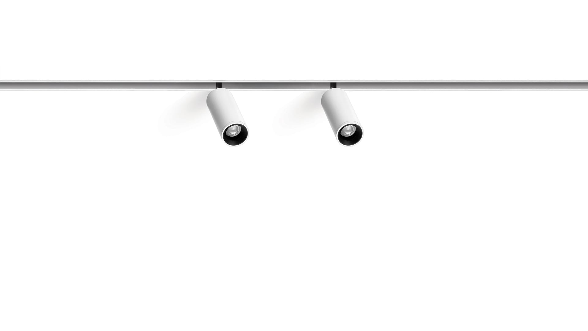 Géométrie cylindrique et de formes essentielles. Minimalisme esthétique et fonctionnalité. Projecteur pour applications de rails 48V.