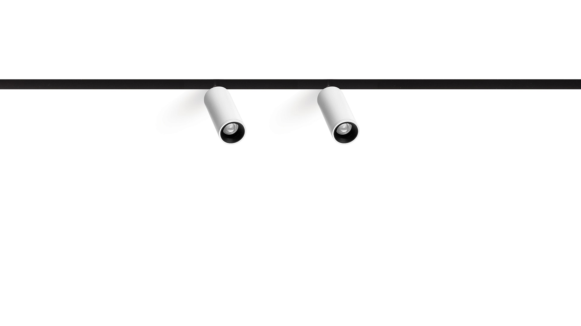 Géométrie cylindrique et de formes essentielles. Minimalisme esthétique et fonctionnalité. Projecteur pour applications de rails 48V.