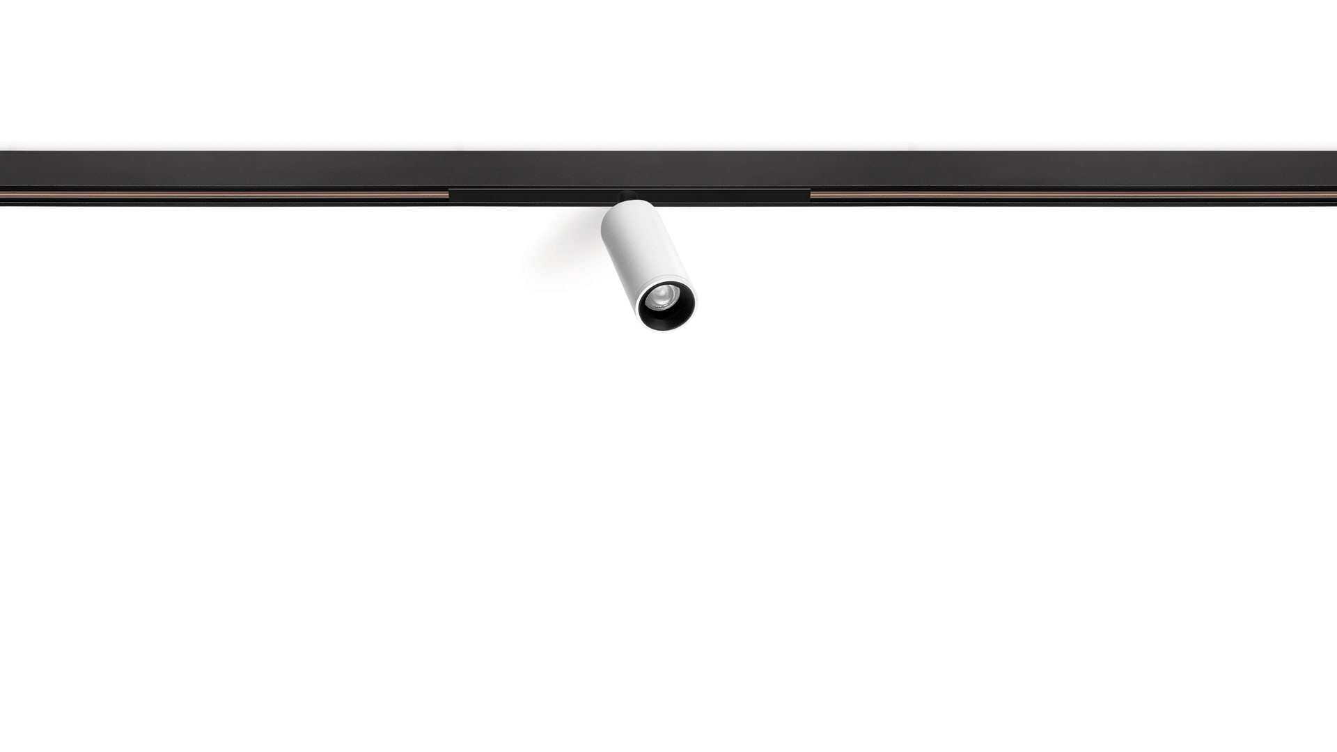 Géométrie cylindrique et de formes essentielles. Minimalisme esthétique et fonctionnalité. Projecteur pour applications de rails 48V.