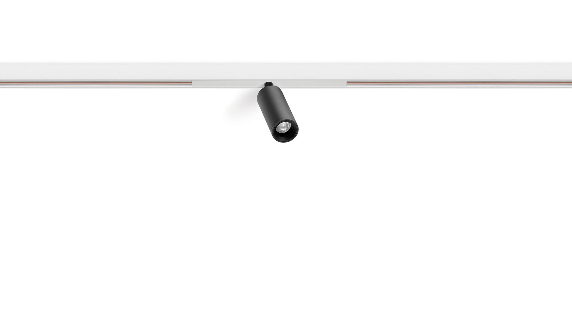 Géométrie cylindrique et de formes essentielles. Minimalisme esthétique et fonctionnalité. Projecteur pour applications de rails 48V.