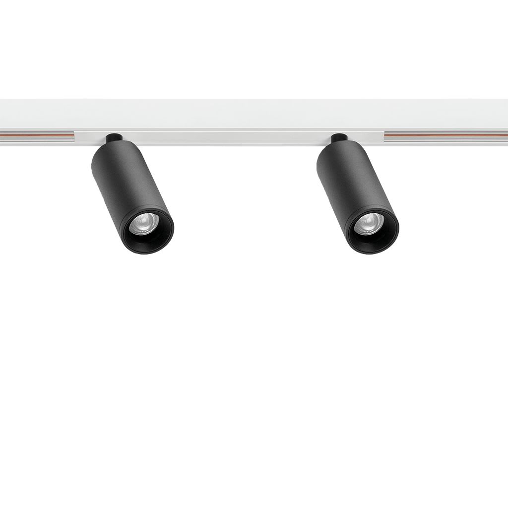 Géométrie cylindrique et de formes essentielles. Minimalisme esthétique et fonctionnalité. Projecteur pour applications de rails 48V.