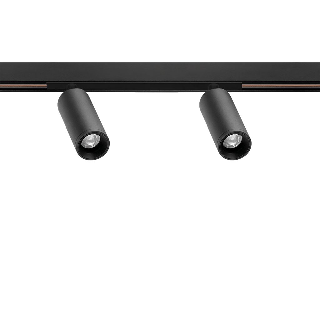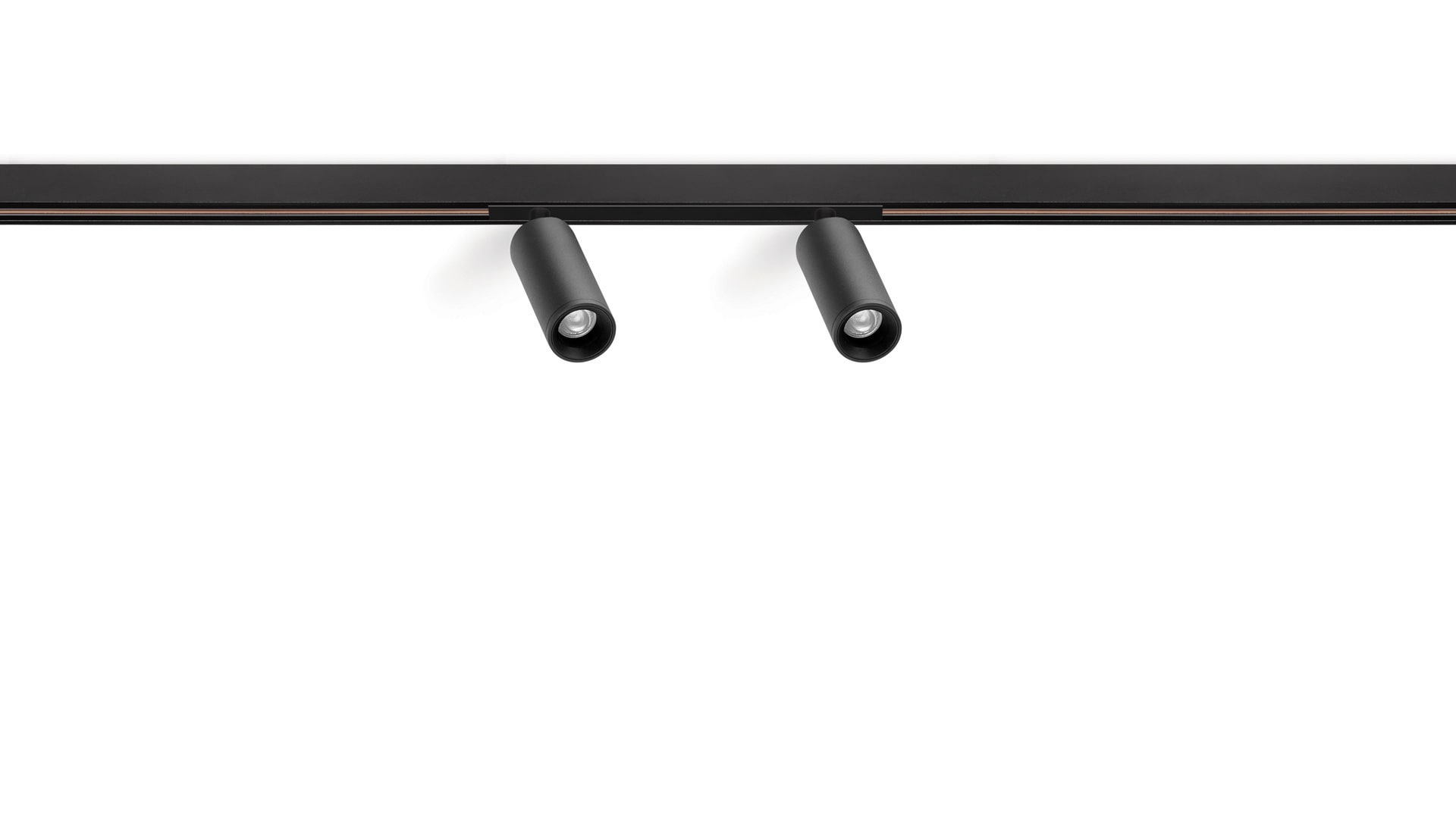 Géométrie cylindrique et de formes essentielles. Minimalisme esthétique et fonctionnalité. Projecteur pour applications de rails 48V.
