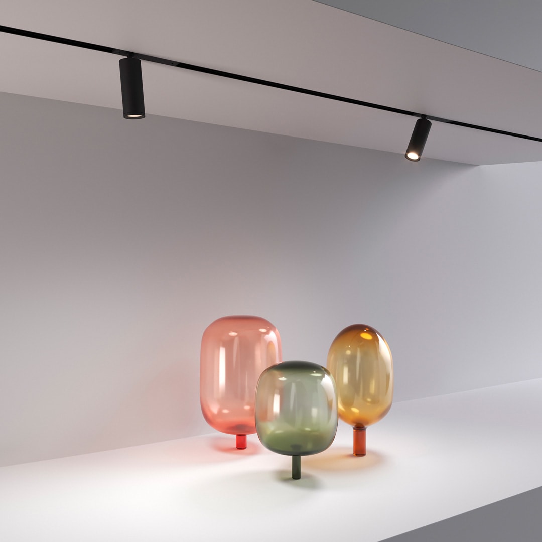 Application : espaces qui requièrent un éclairage miniaturisé, vitrines ou plafonds bas. Profilé ultrafin en aluminium anodisé noir mat. Rail en saillie avec effet visuel trimless. Uniformité visuelle, ligne minimaliste noire. Miniaturisation optimale du rail, des luminaires et des composants.