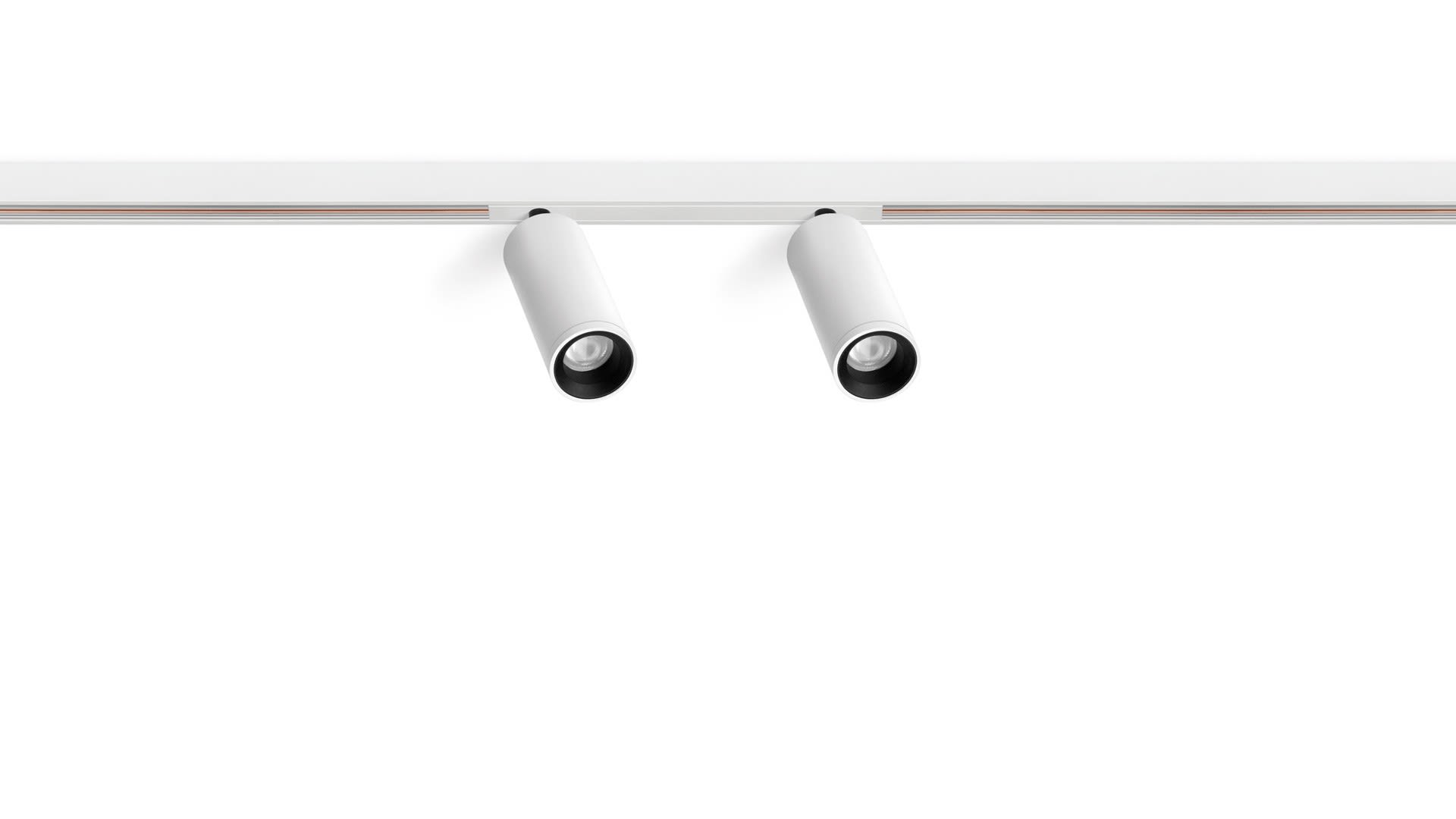 Géométrie cylindrique et de formes essentielles. Minimalisme esthétique et fonctionnalité. Projecteur pour applications de rails 48V.