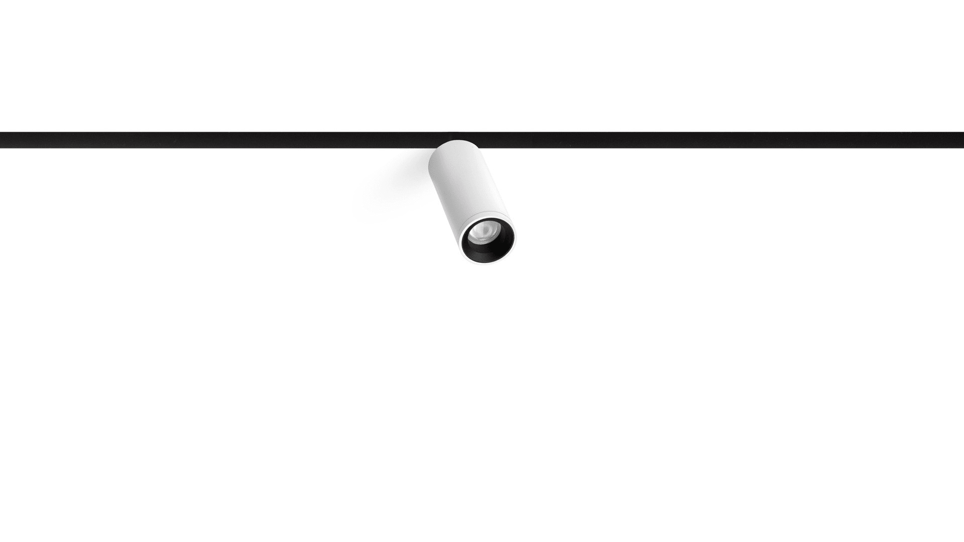 Géométrie cylindrique et de formes essentielles. Minimalisme esthétique et fonctionnalité. Projecteur pour applications de rails 48V.
