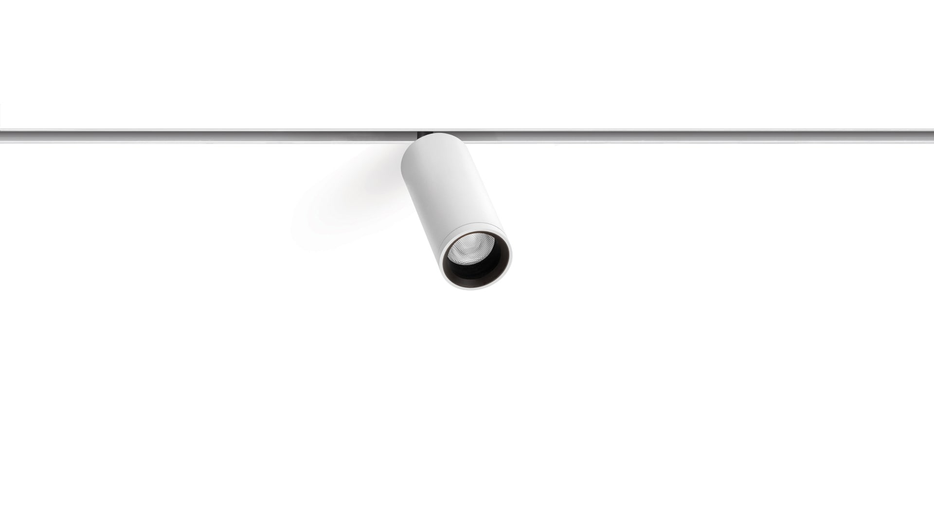 Géométrie cylindrique et de formes essentielles. Minimalisme esthétique et fonctionnalité. Projecteur pour applications de rails 48V.