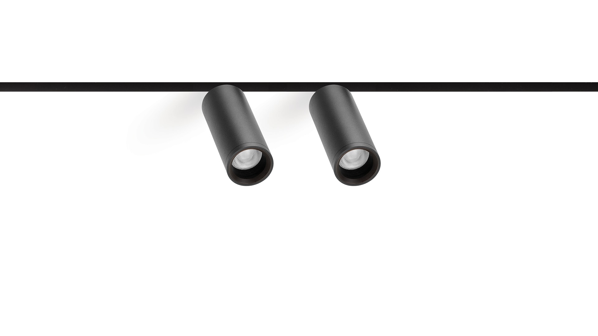 Géométrie cylindrique et de formes essentielles. Minimalisme esthétique et fonctionnalité. Projecteur pour applications de rails 48V.