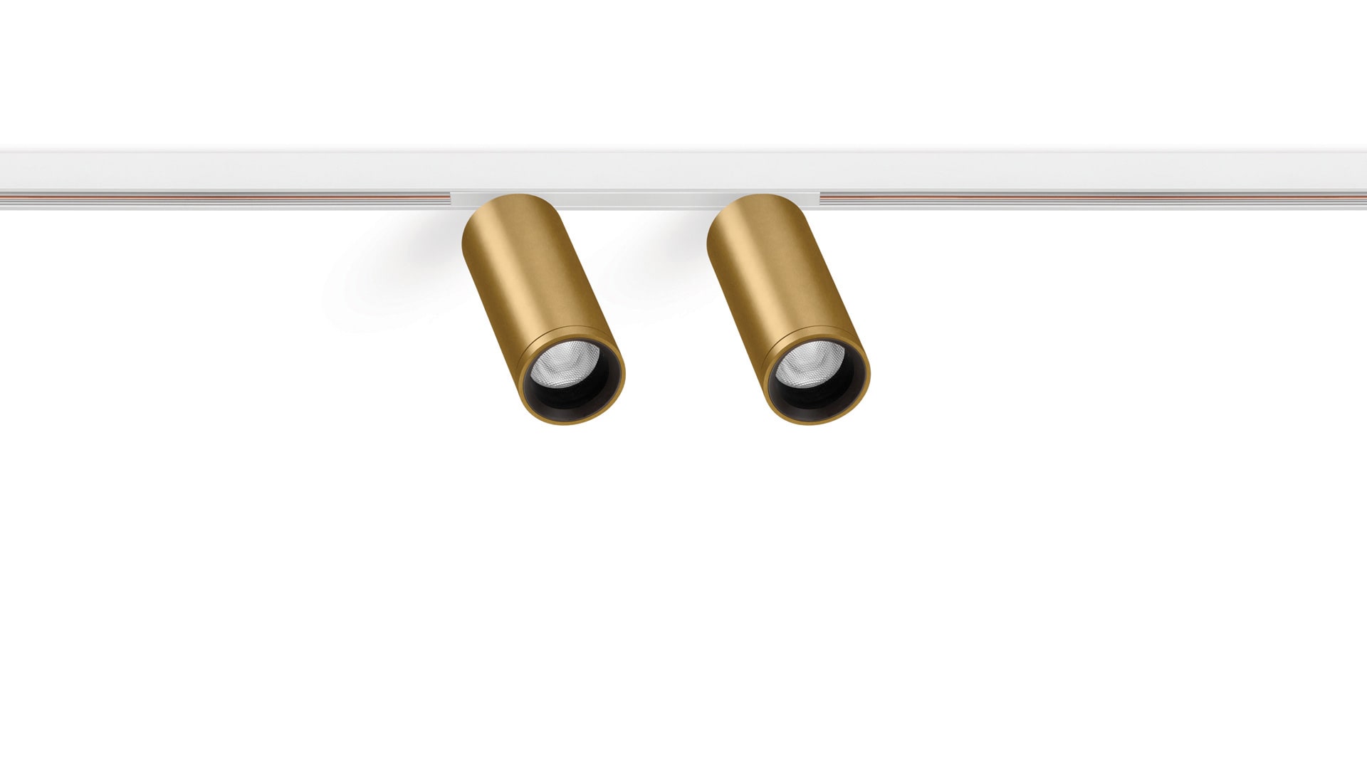 Géométrie cylindrique et de formes essentielles. Minimalisme esthétique et fonctionnalité. Projecteur pour applications de rails 48V.