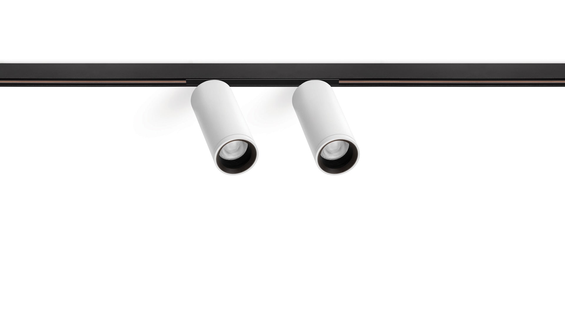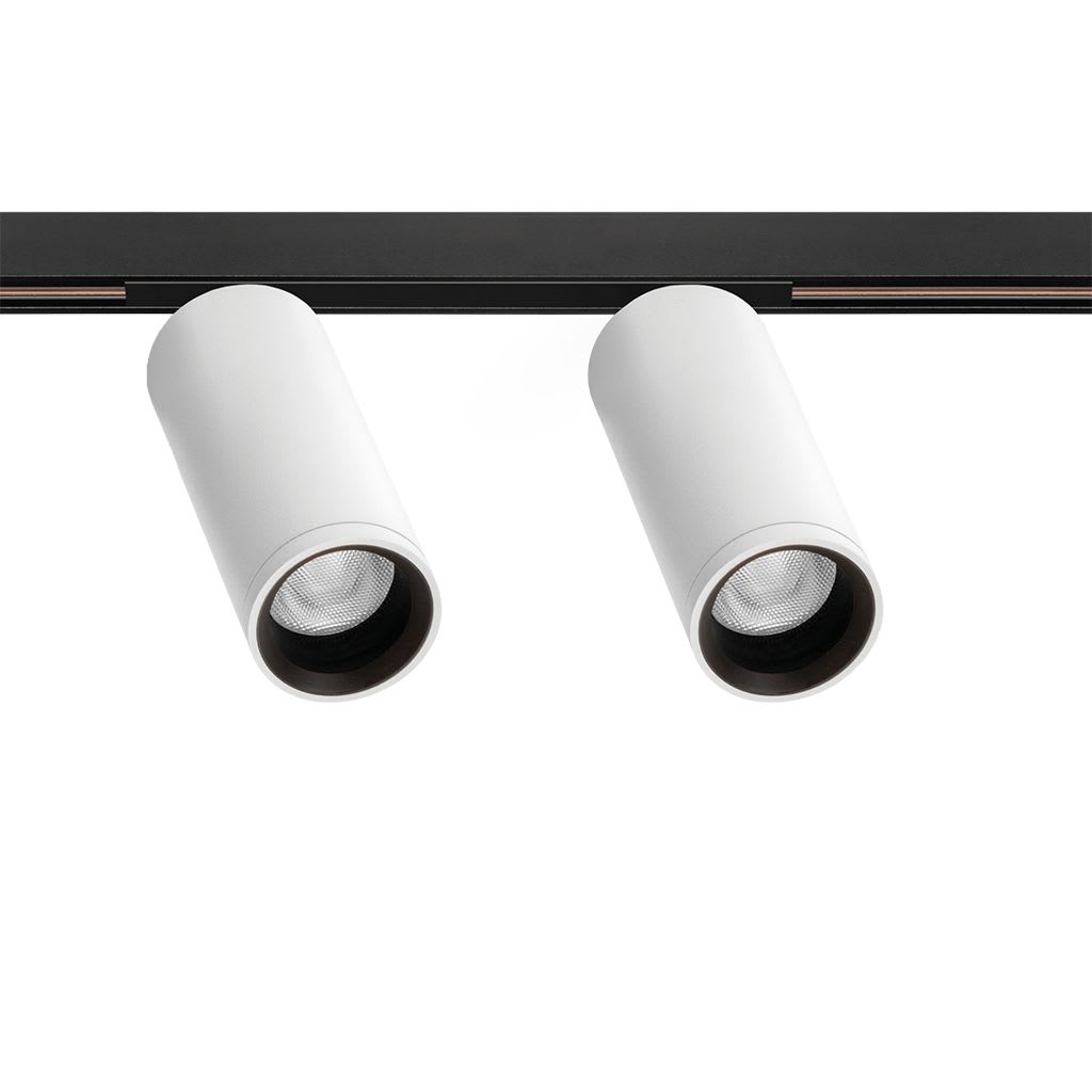 Géométrie cylindrique et de formes essentielles. Minimalisme esthétique et fonctionnalité. Projecteur pour applications de rails 48V.
