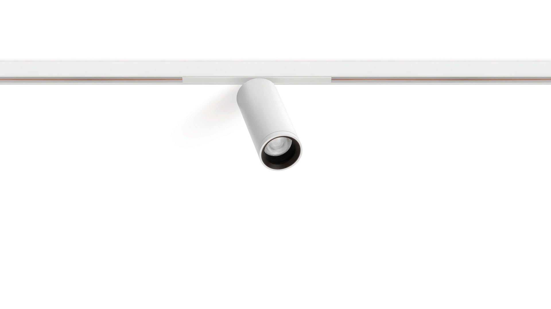 Géométrie cylindrique et de formes essentielles. Minimalisme esthétique et fonctionnalité. Projecteur pour applications de rails 48V.
