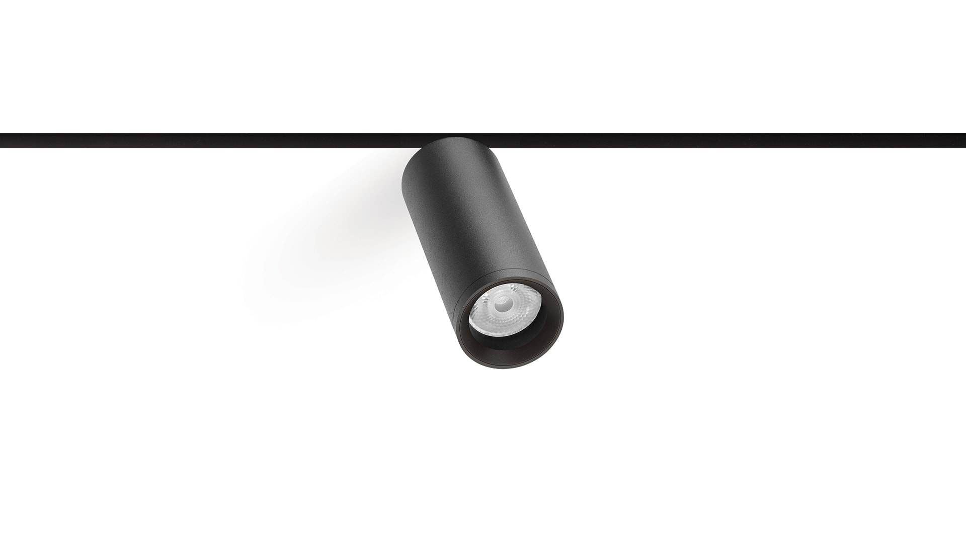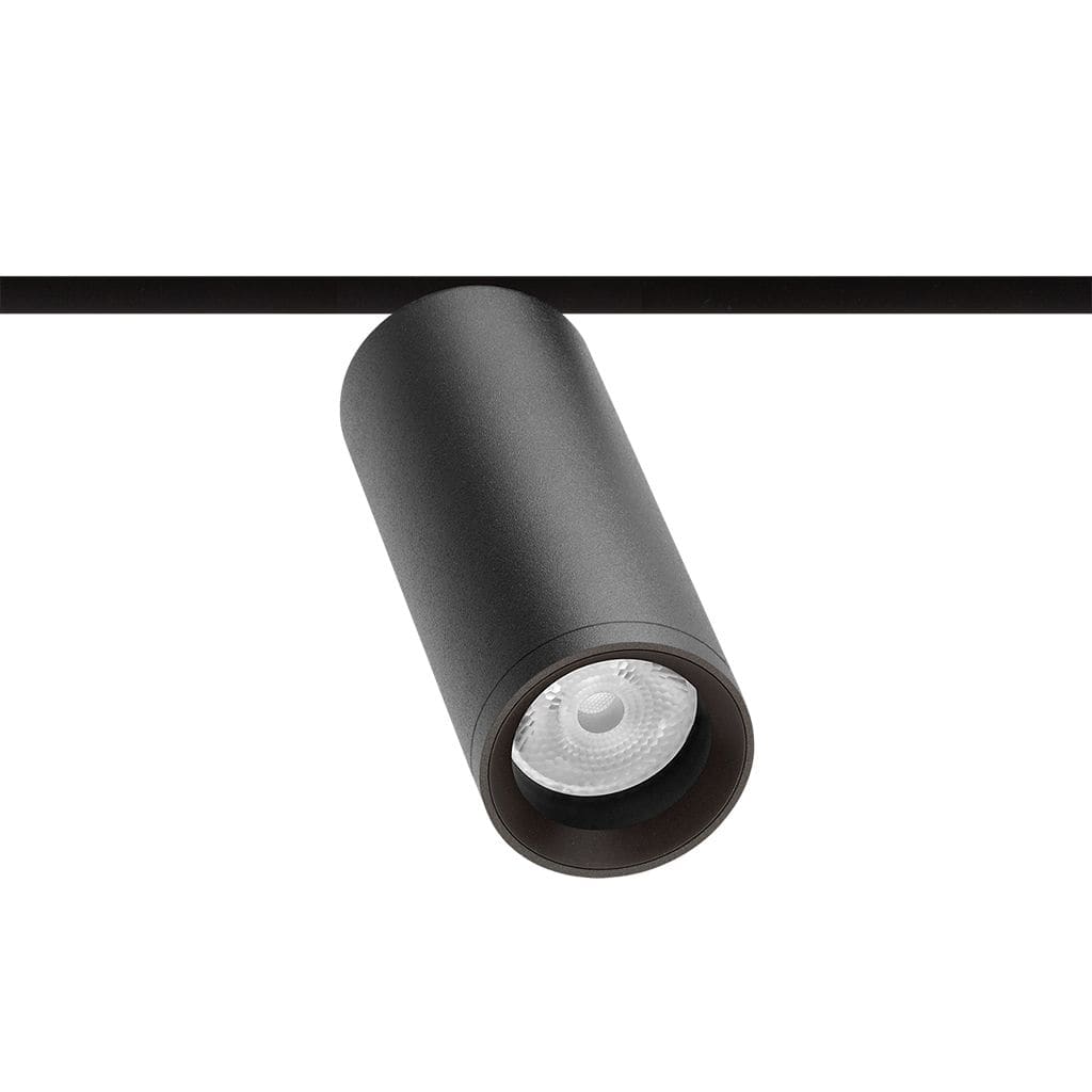 Géométrie cylindrique et de formes essentielles. Minimalisme esthétique et fonctionnalité. Projecteur pour applications de rails 48V.