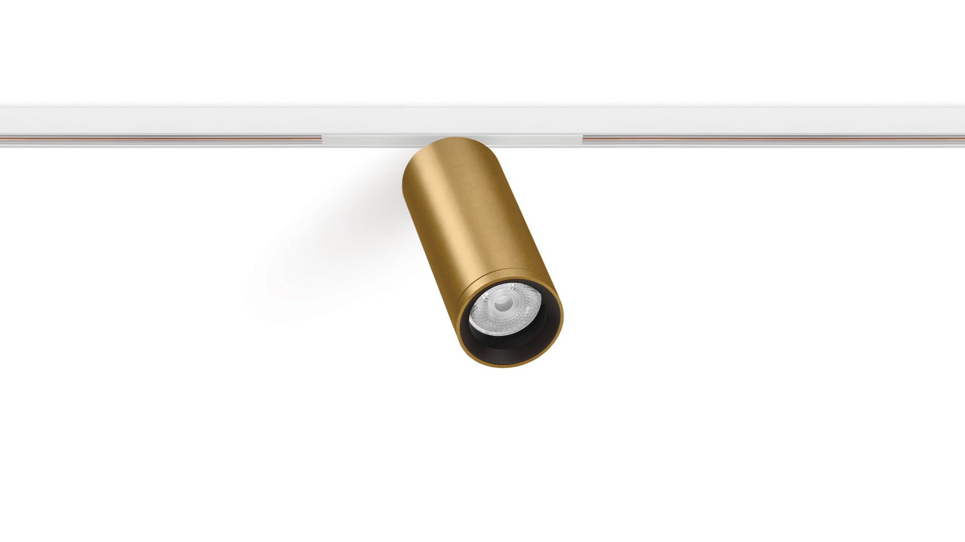 Géométrie cylindrique et de formes essentielles. Minimalisme esthétique et fonctionnalité. Projecteur pour applications de rails 48V.