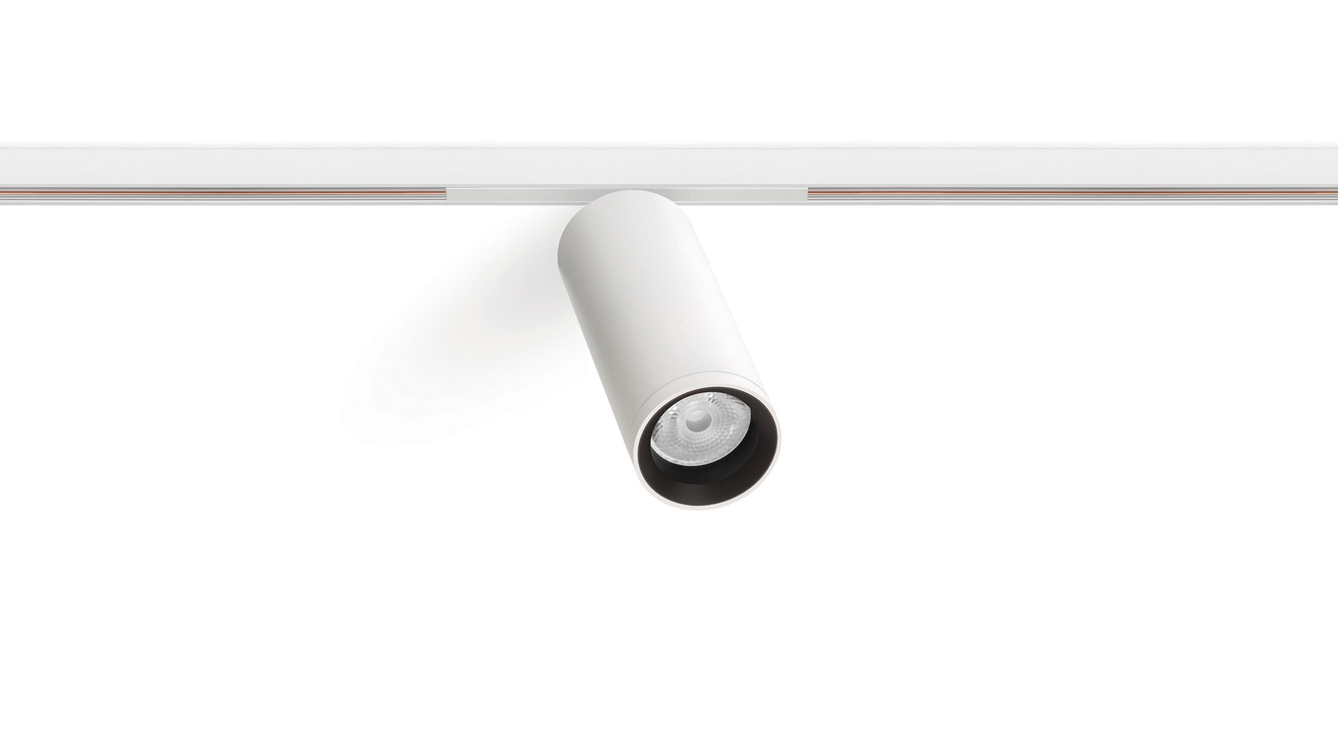 Géométrie cylindrique et de formes essentielles. Minimalisme esthétique et fonctionnalité. Projecteur pour applications de rails 48V.