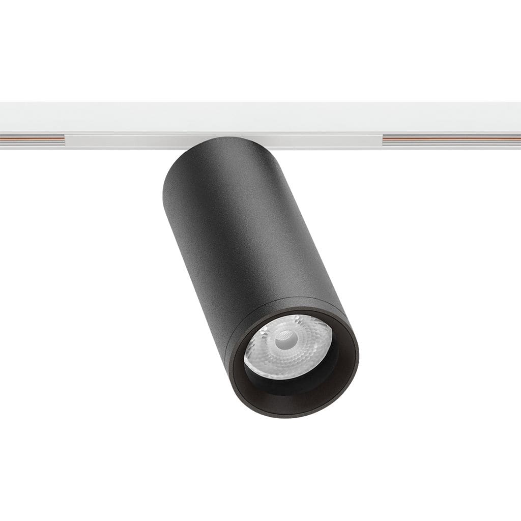Géométrie cylindrique et de formes essentielles. Minimalisme esthétique et fonctionnalité. Projecteur pour applications de rails 48V.