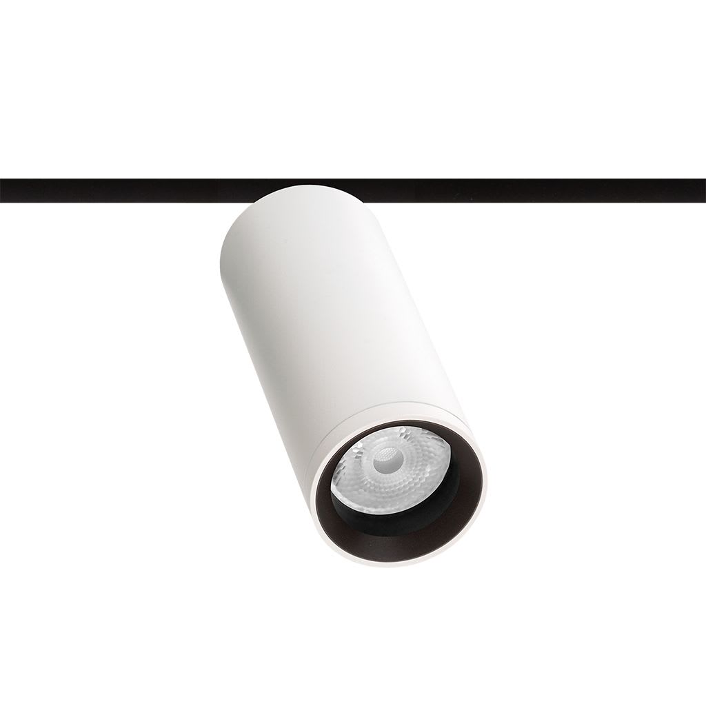 Géométrie cylindrique et de formes essentielles. Minimalisme esthétique et fonctionnalité. Projecteur pour applications de rails 48V.