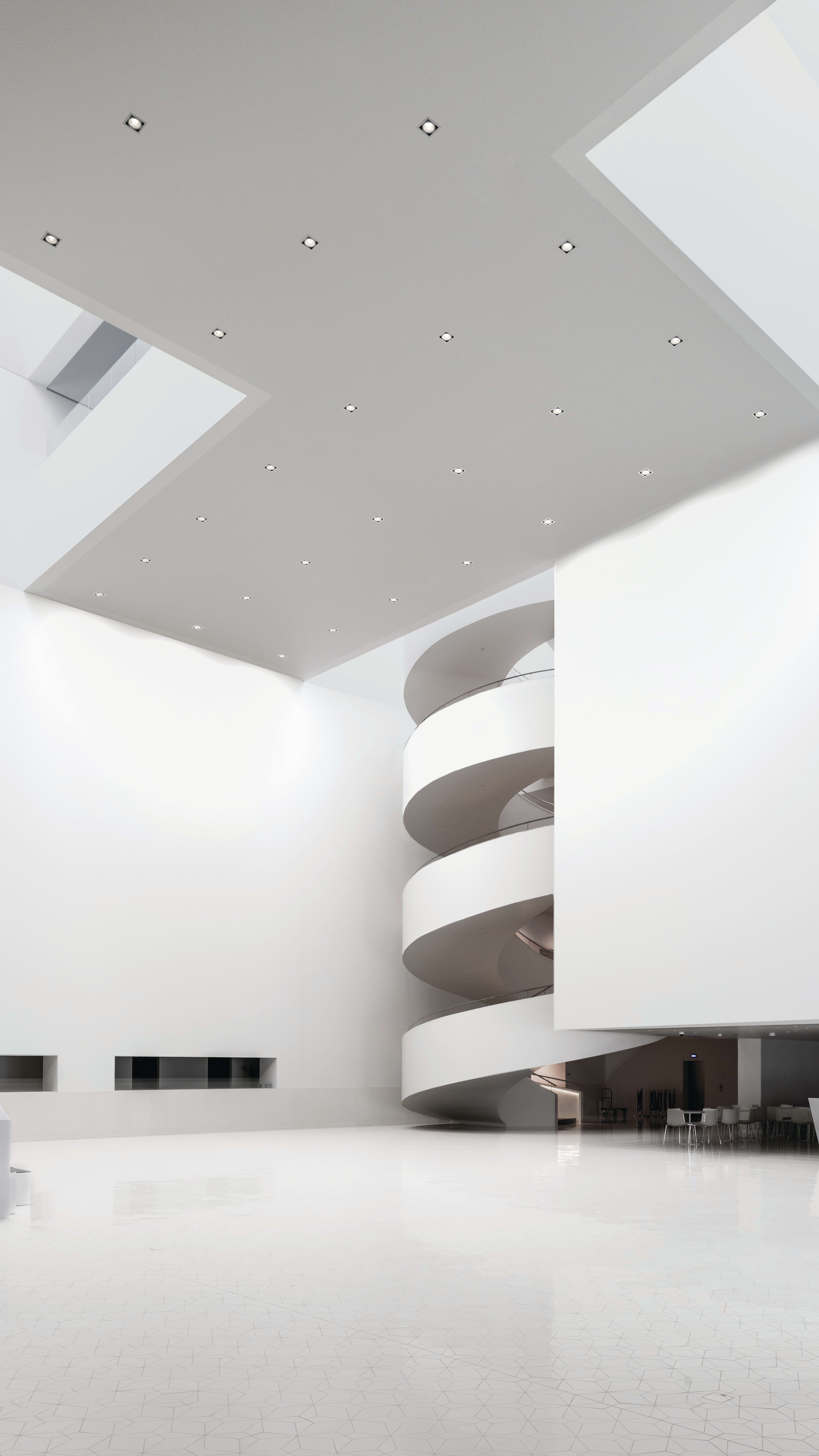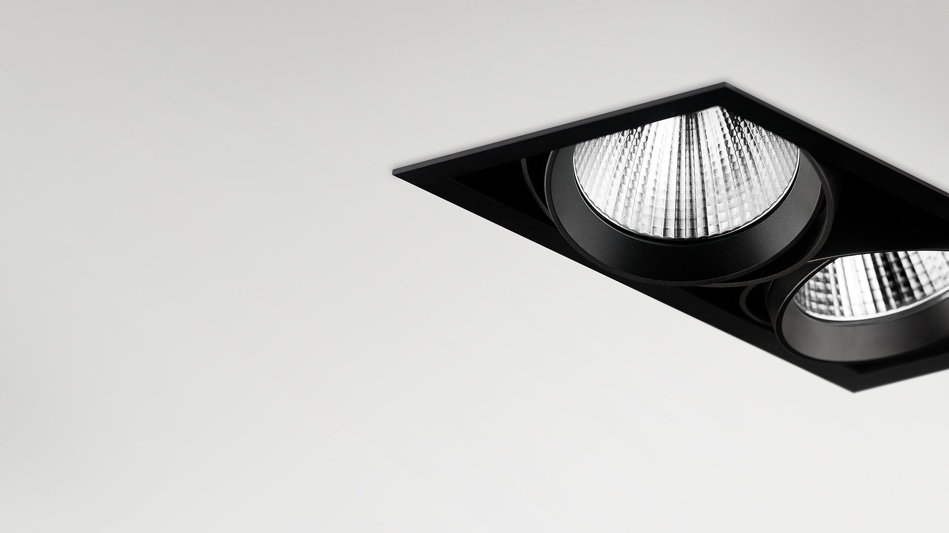 Flux lumineux remarquable, idéal pour des espaces qui ont besoin d’une grande quantité de lumière et d’un éclairage projeté. Luminaire à encastrer, à LED, basculant sur un système de cardan.
