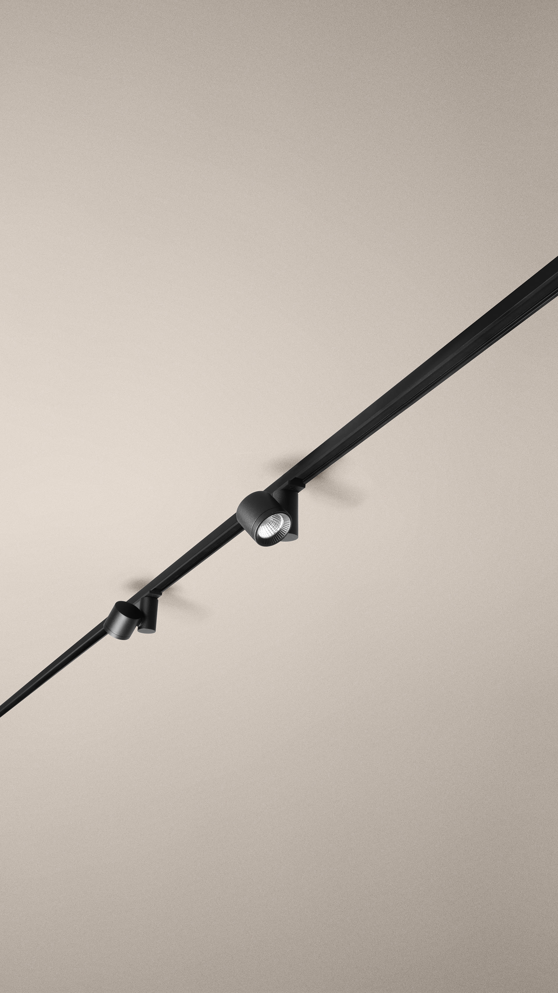Profilé ultrafin en aluminium anodisé noir mat. Rail en saillie avec effet visuel trimless. Uniformité visuelle, ligne minimaliste noire. Miniaturisation optimale du rail, des luminaires et des composants.