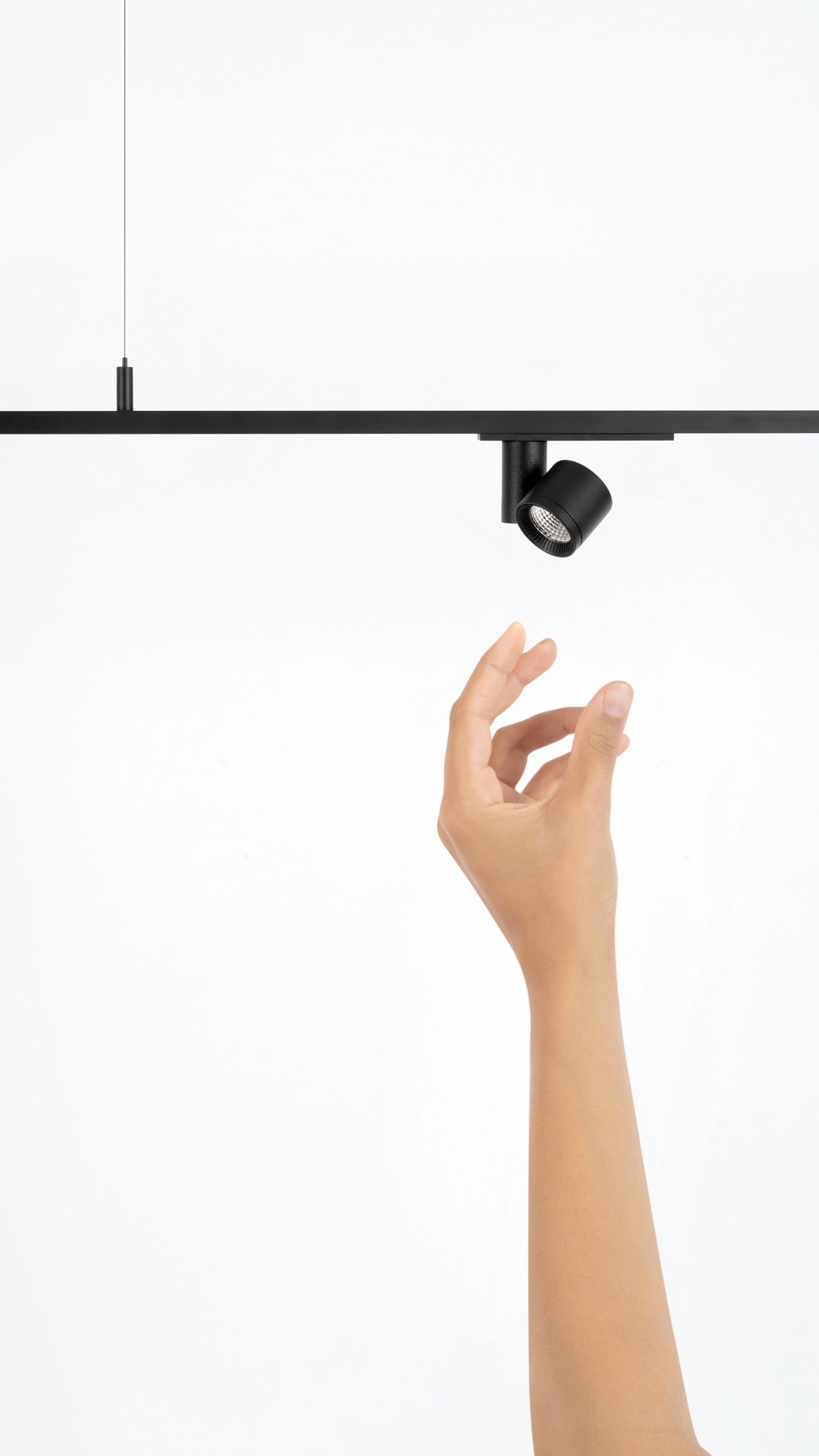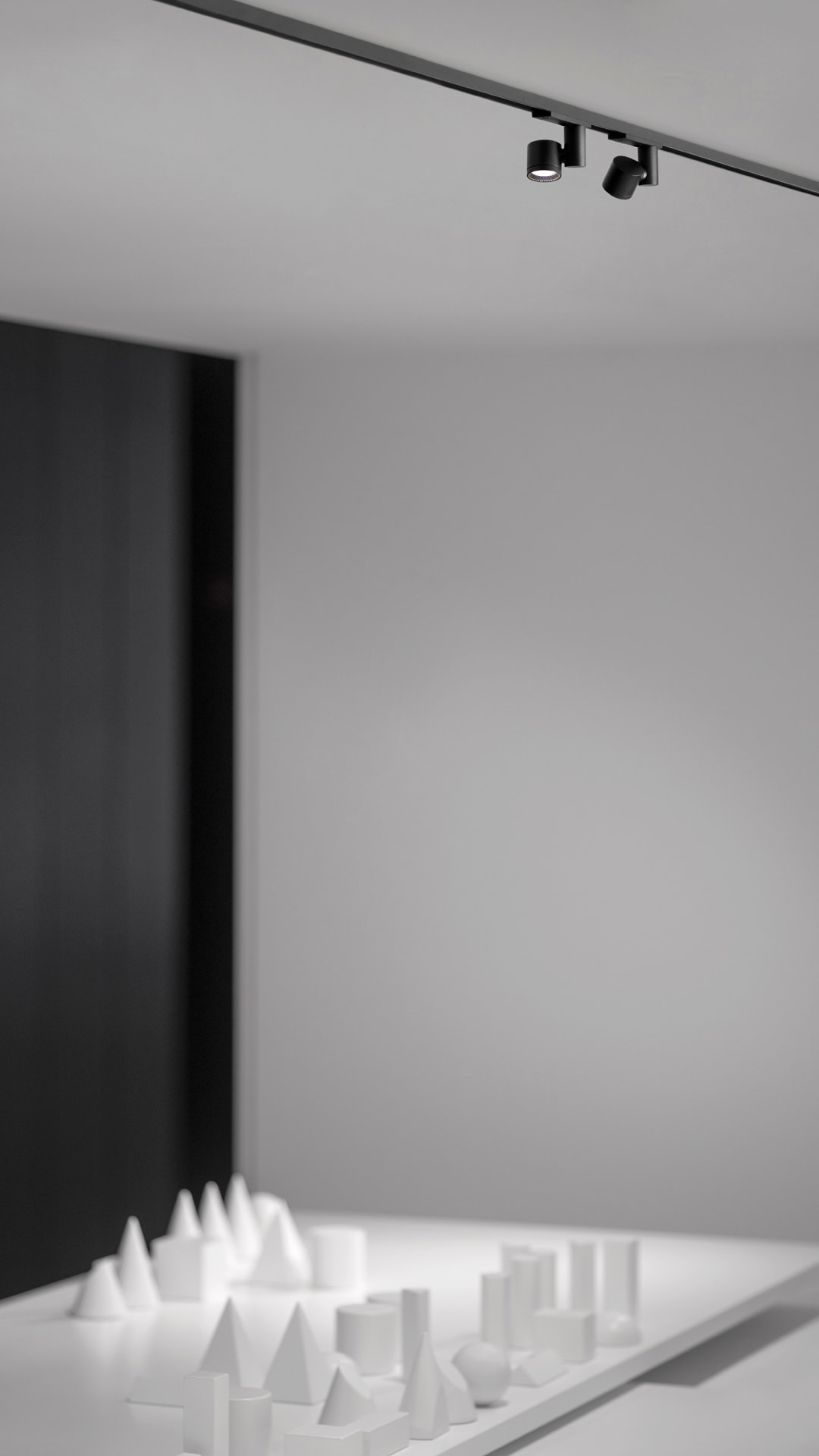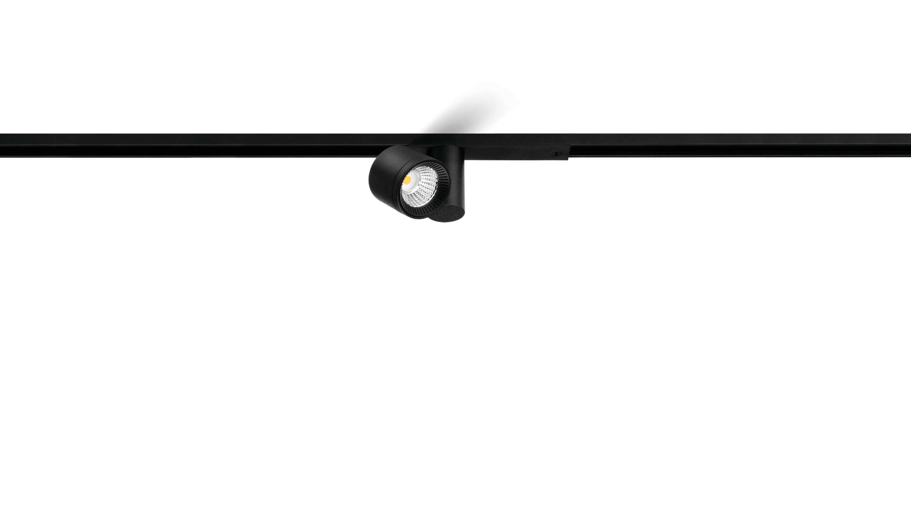 Profilé ultrafin en aluminium anodisé noir mat. Rail en saillie avec effet visuel trimless. Uniformité visuelle, ligne minimaliste noire. Miniaturisation optimale du rail, des luminaires et des composants.