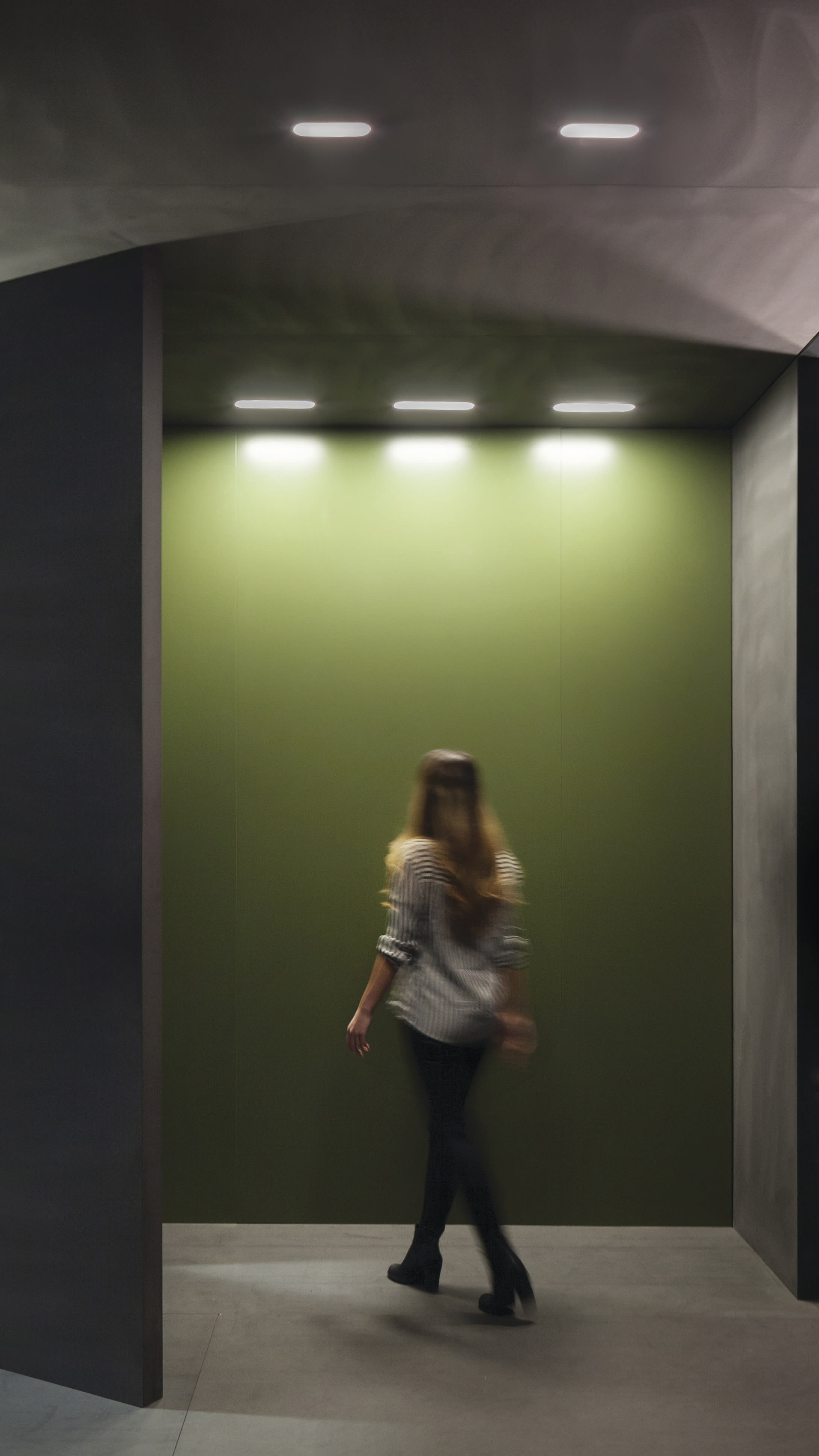 Diffusion parfaite de la lumière. Géométrie élégante. Haute étanchéité IP54. Downlight en forme oblongue (plus longue que large dont les angles sont arrondis). Une esthétique attrayante et complètement différente.