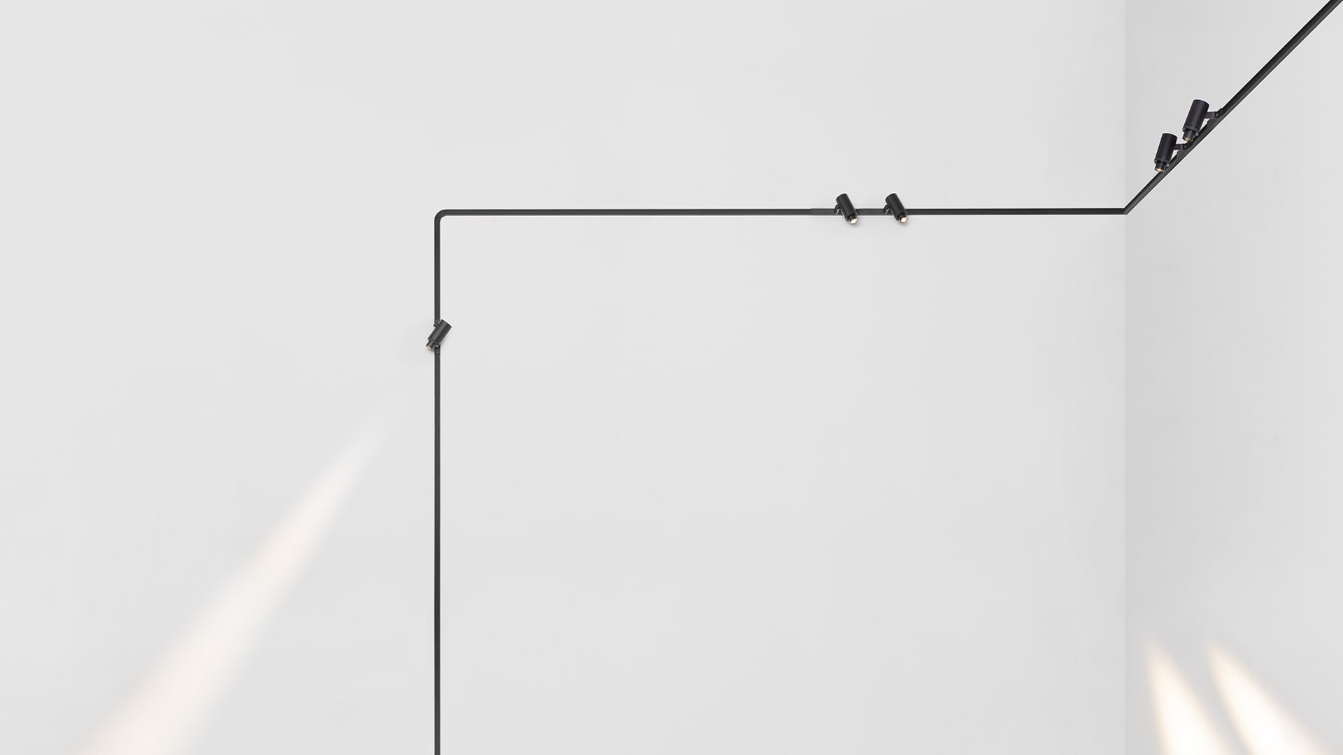 Application : espaces qui requièrent un éclairage miniaturisé, vitrines ou plafonds bas. Profilé ultrafin en aluminium anodisé noir mat. Rail en saillie avec effet visuel trimless. Uniformité visuelle, ligne minimaliste noire. Miniaturisation optimale du rail, des luminaires et des composants.