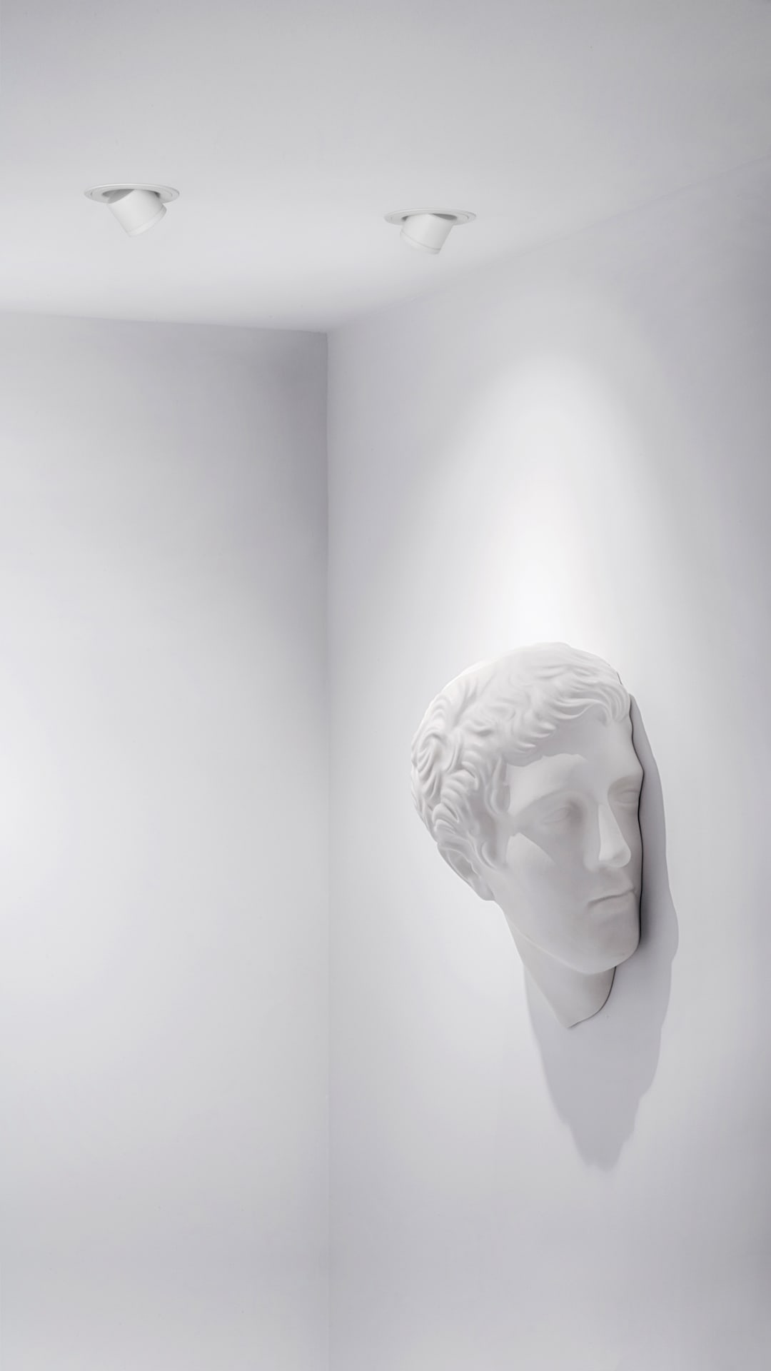 Accessoire en option : panneau en nid d'abeille anti-éblouissement. Applications d'éclairage d'accentuation. Complètement orientable, facilement avec la main. Présence discrète dans la décoration intérieure. Projecteur encastré miniaturisé.