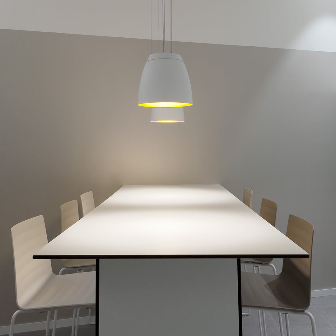 Diffuseur qui réduit l'éblouissement pour améliorer le confort visuel. Disponible en deux tailles (standard et mini) Esthétique contemporaine et paravents avec différentes finitions. Grande valeur décorative