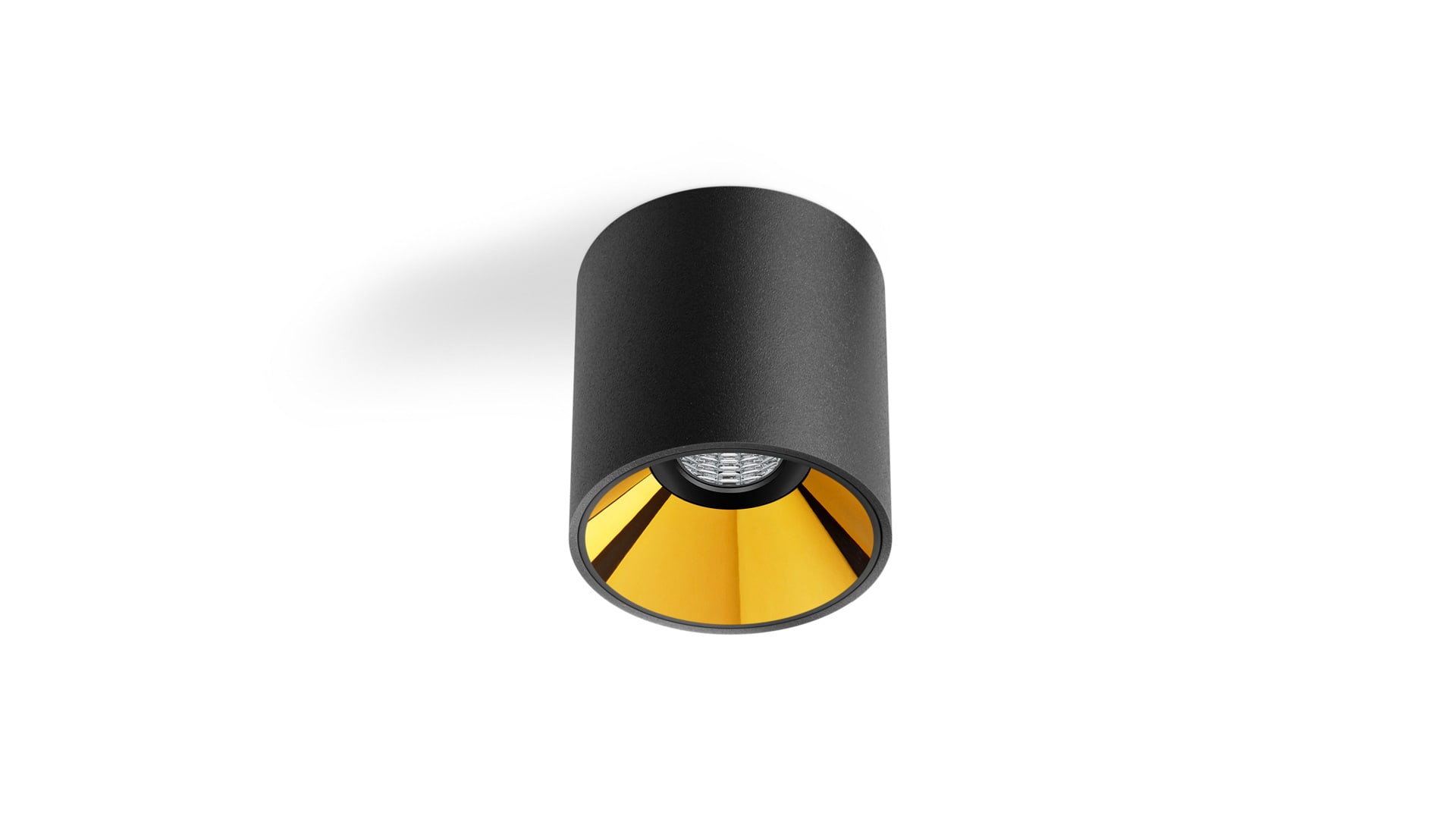 Catégorie: SURFACE - Couleur: Noir Texturé-Or métallique - 690 / 940 / 1530 Lm - 4,5 / 6,5 / 12,4 W - 3000 K - CRI>90 - Variation d’intensité: Non Dim / DALI - Durée de vie de la LED: L90B10 >55.000h - IP20