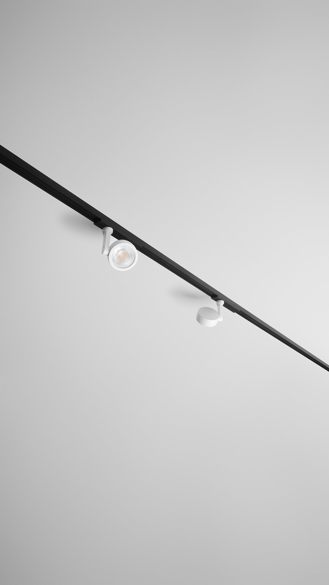 Application : espaces qui requièrent un éclairage miniaturisé, vitrines ou plafonds bas. Profilé ultrafin en aluminium anodisé noir mat. Rail en saillie avec effet visuel trimless. Uniformité visuelle, ligne minimaliste noire. Miniaturisation optimale du rail, des luminaires et des composants.