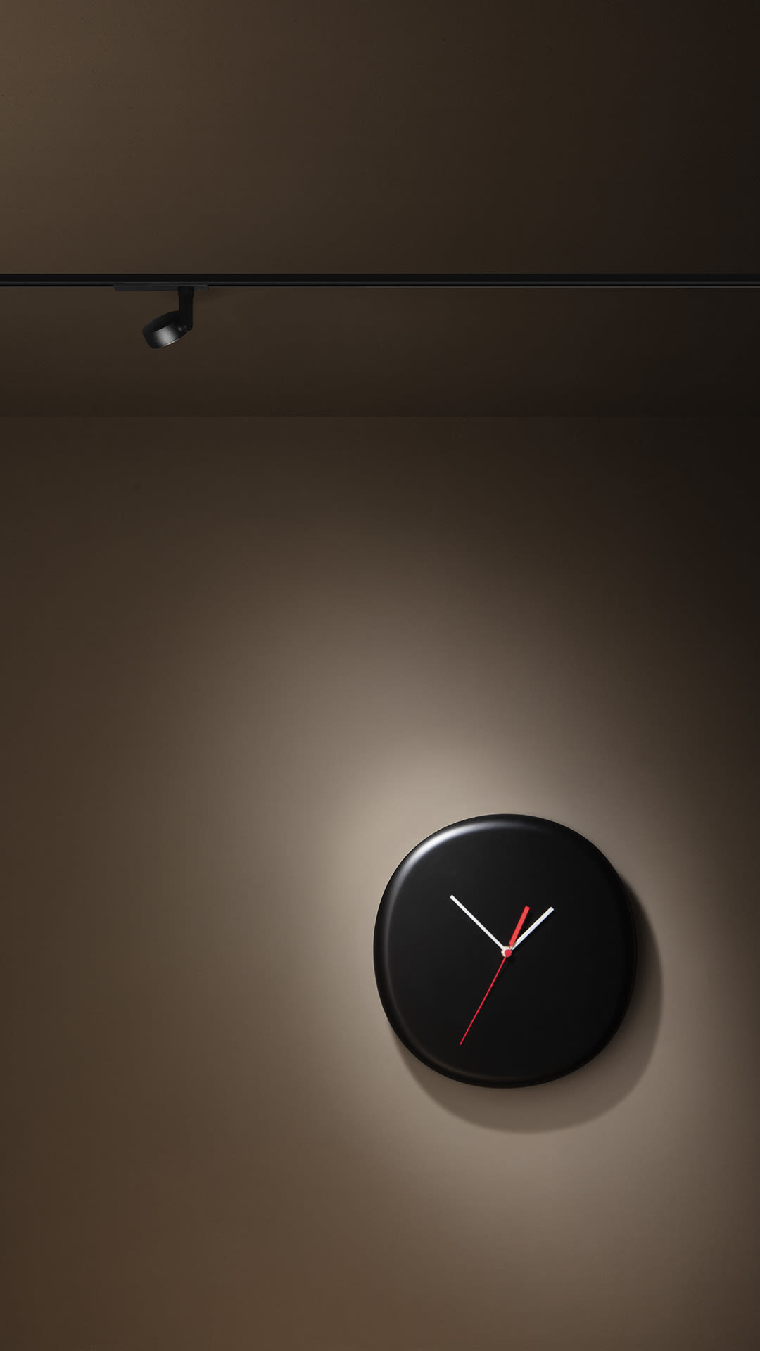 Profilé ultrafin en aluminium anodisé noir mat. Rail en saillie avec effet visuel trimless. Uniformité visuelle, ligne minimaliste noire. Miniaturisation optimale du rail, des luminaires et des composants.