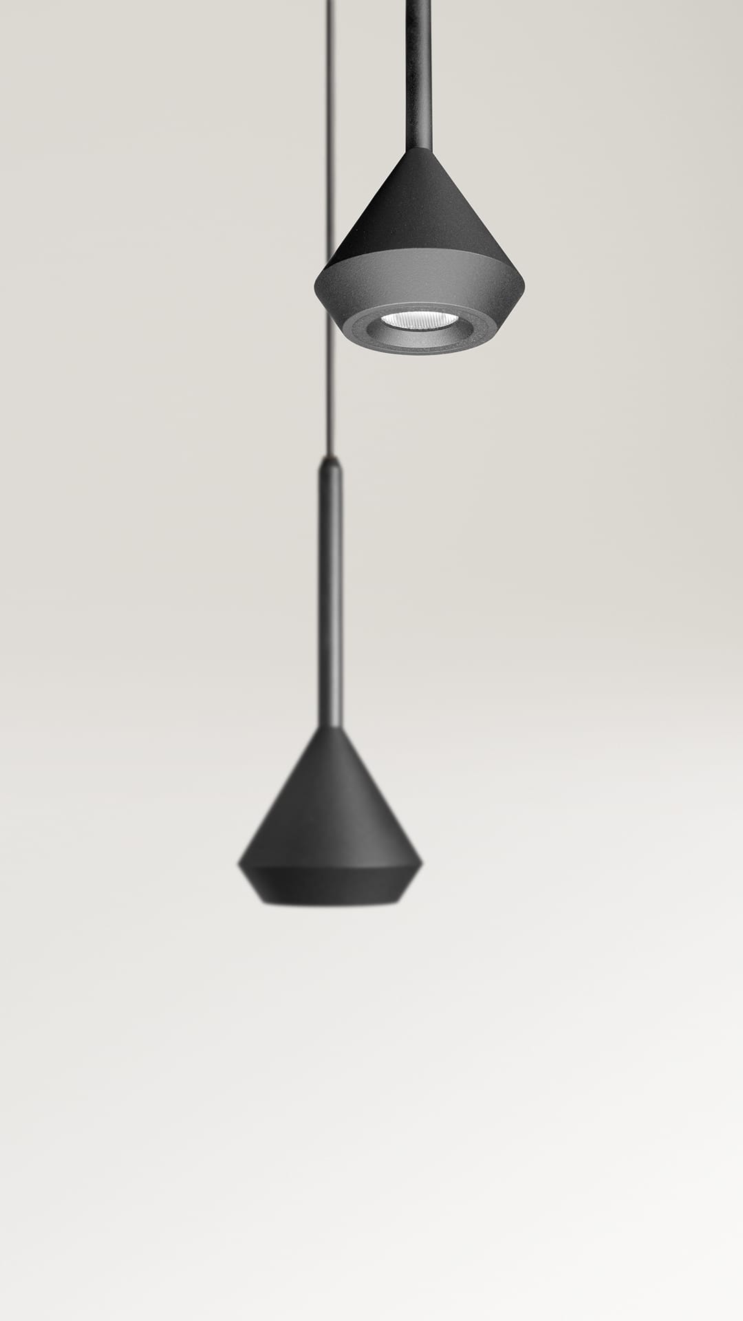 éclairage d'accentuation dimensions minimales, lignes essentielles et géométrie de révolution
