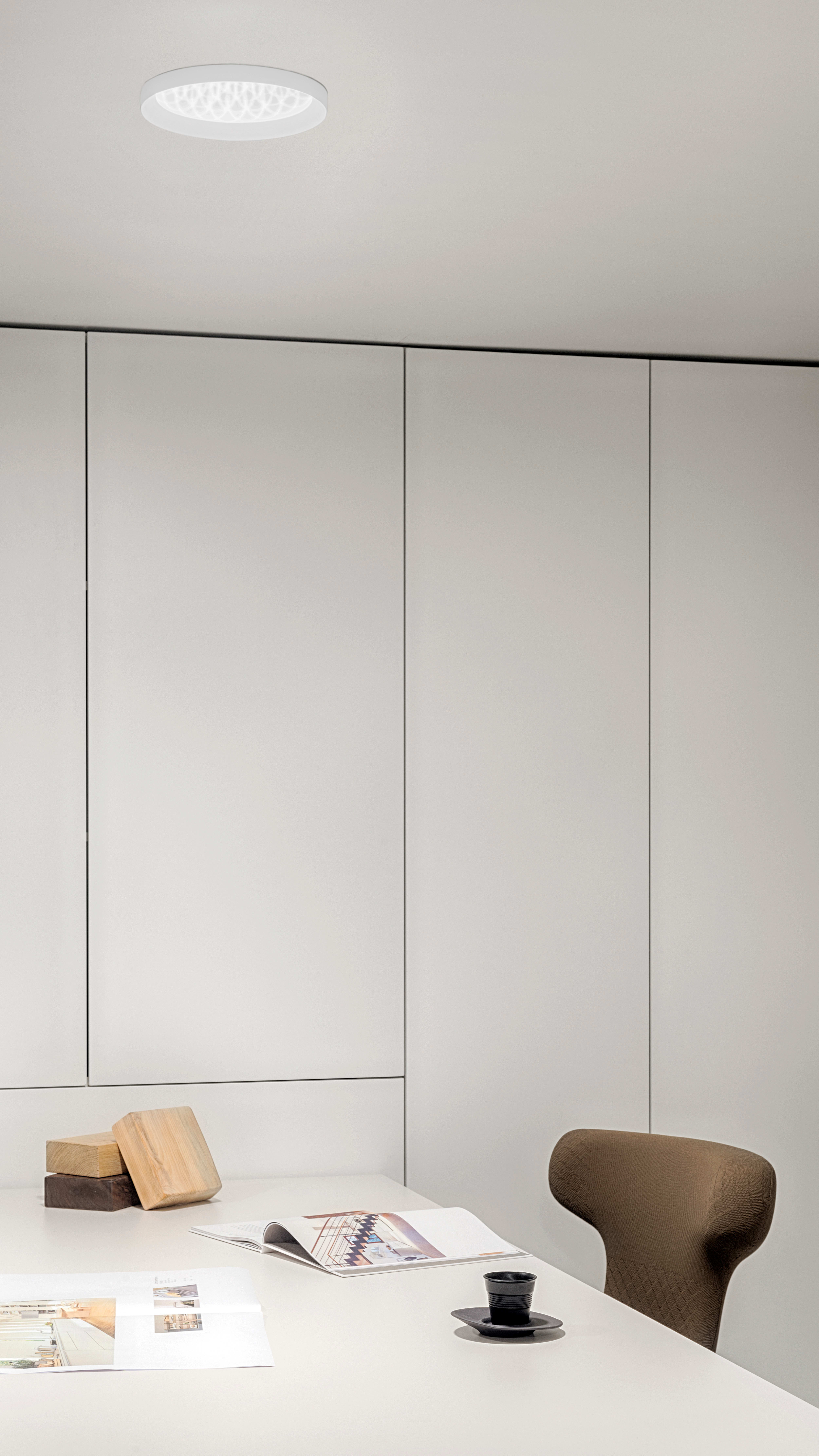 une présence marquée version Prismatic permet de réduire l’index UGR. Downlight encastrable avec collerette