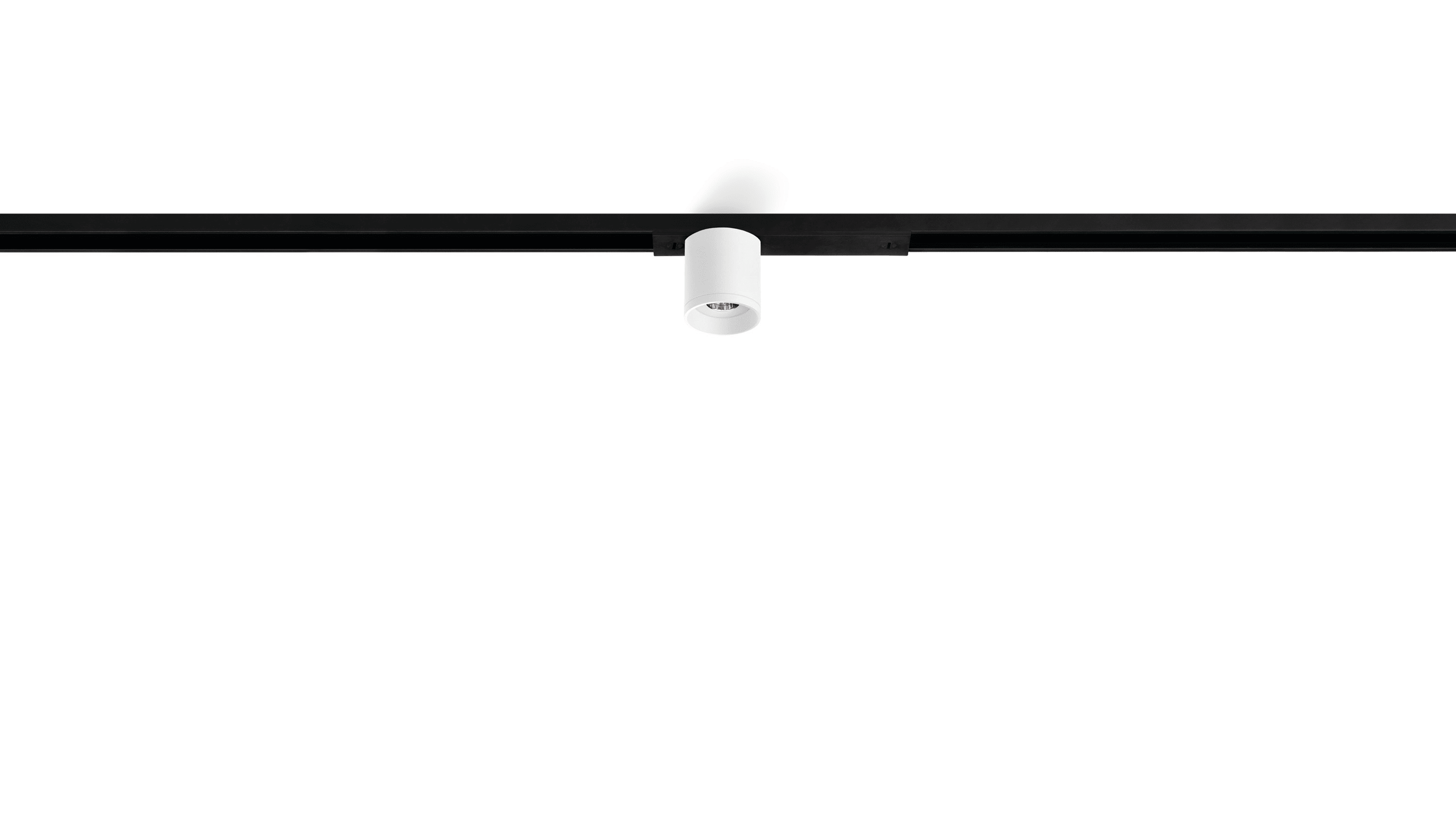 Application : espaces qui requièrent un éclairage miniaturisé, vitrines ou plafonds bas. Profilé ultrafin en aluminium anodisé noir mat. Rail en saillie avec effet visuel trimless. Uniformité visuelle, ligne minimaliste noire. Miniaturisation optimale du rail, des luminaires et des composants.