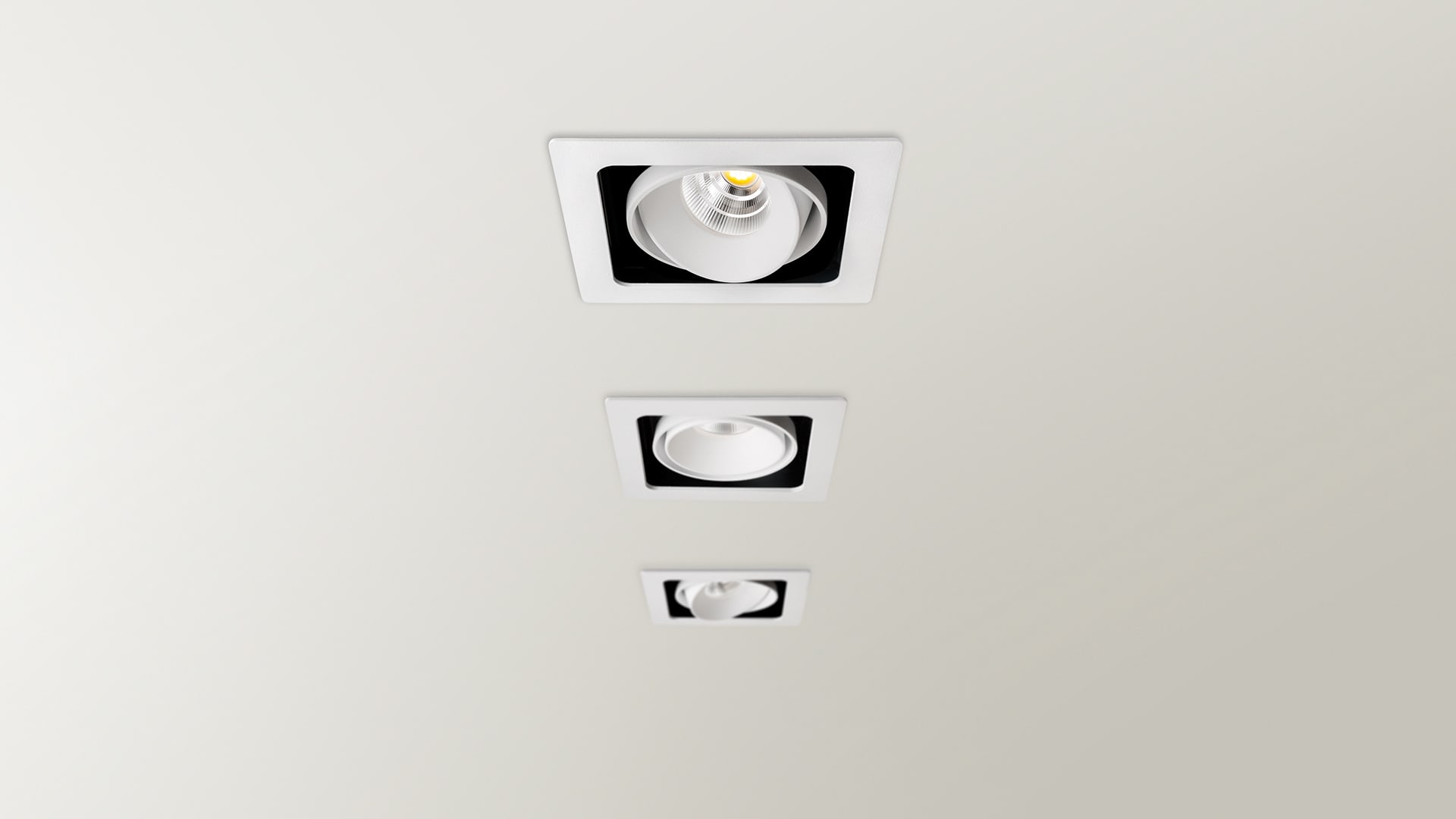 Configuré avec une ou deux sources lumineuses. Format réduit. Performance remarquable. Luminaire LED à faisceaux orientables