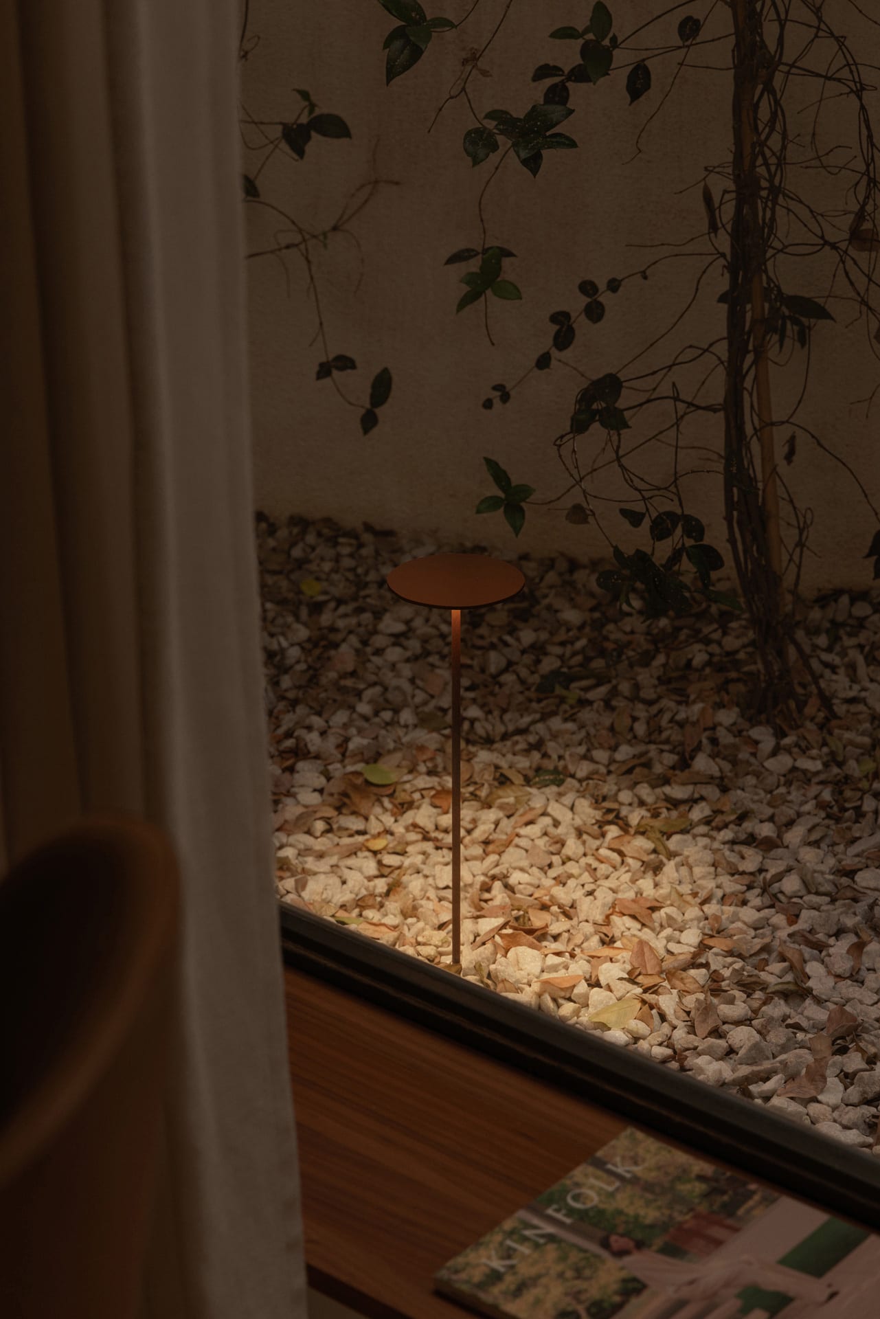 points de lumière ambiante dans le jardin présence éthérée et sinueuse