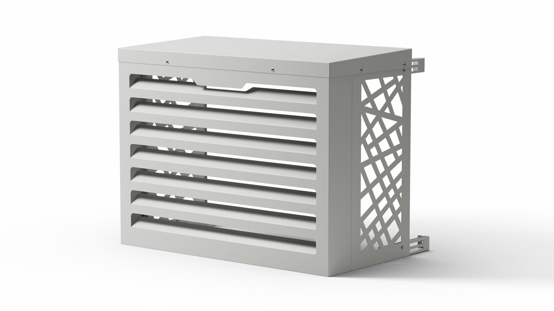 Cache Clim Giada L1150xH1200xP650-850mm. Acier galvanisé avec revêtement en poudre polyester RAL9002. Base supérieure inclinée pour écoulement eau. Aération optimale. Couvercle réversible. Montage en 5 minutes. Extensions ajustables.