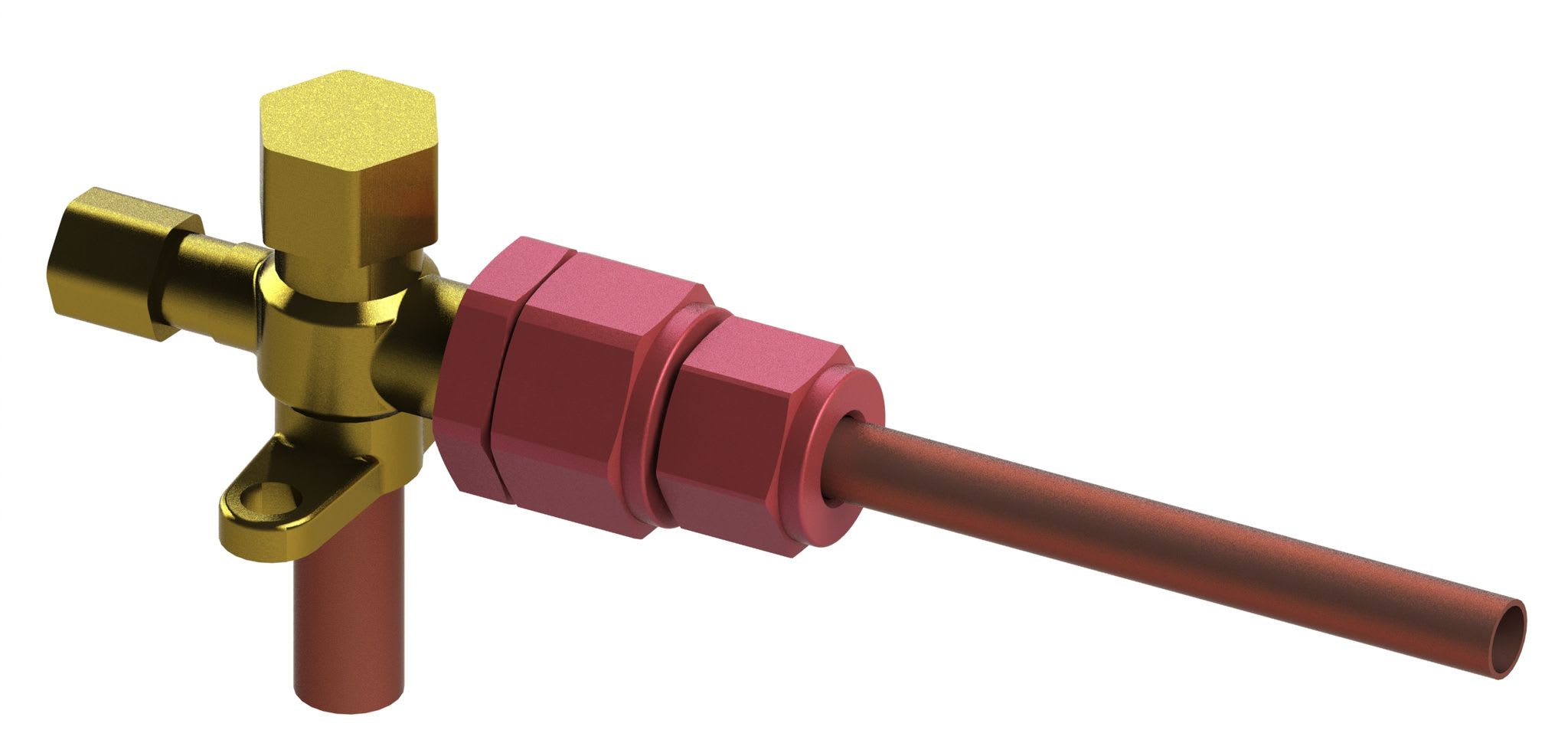 Connecteur-Reducteur Dudgeon 1/2"-3/8" étanche en alliage d'aluminium sans dudgeon. Compatible tous gaz réfrigérants. Bande de positionnement. S'adapte à plusieurs angles. Diamètre 9,52mm. Taille écrou 27mm. Taille écrou-union 22mm.