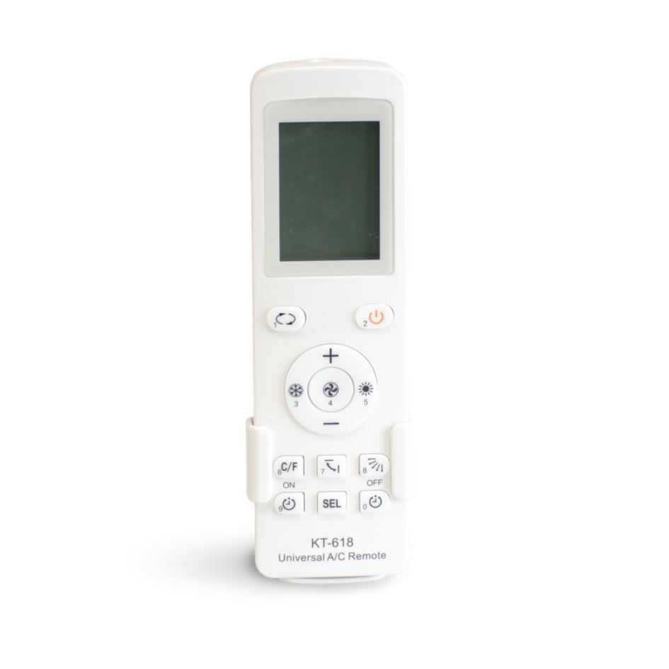 Compatible multi-marques. Affichage température ambiante, mémoire 4 unités, minuterie 1/5/7 jours pour une gestion efficace et économique de la climatisation.