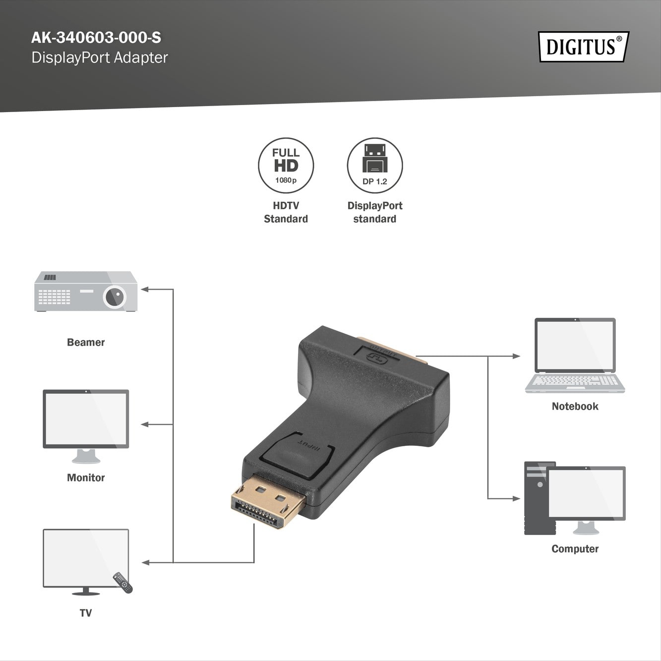 Assmann Electronic - Adaptateur DP - DVI-I (24-5) M/F verrouillage CE noir - AK-340603-000-S