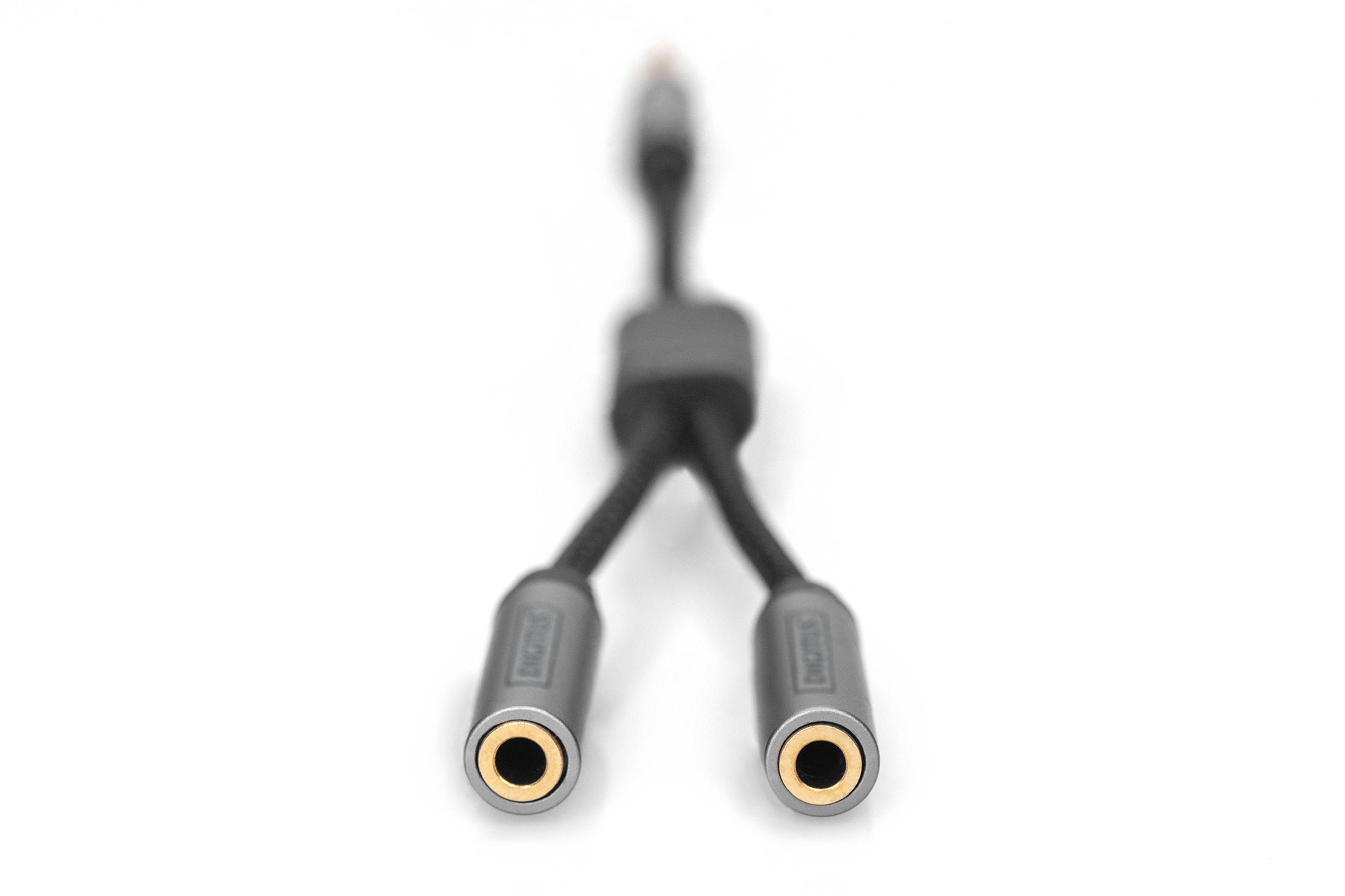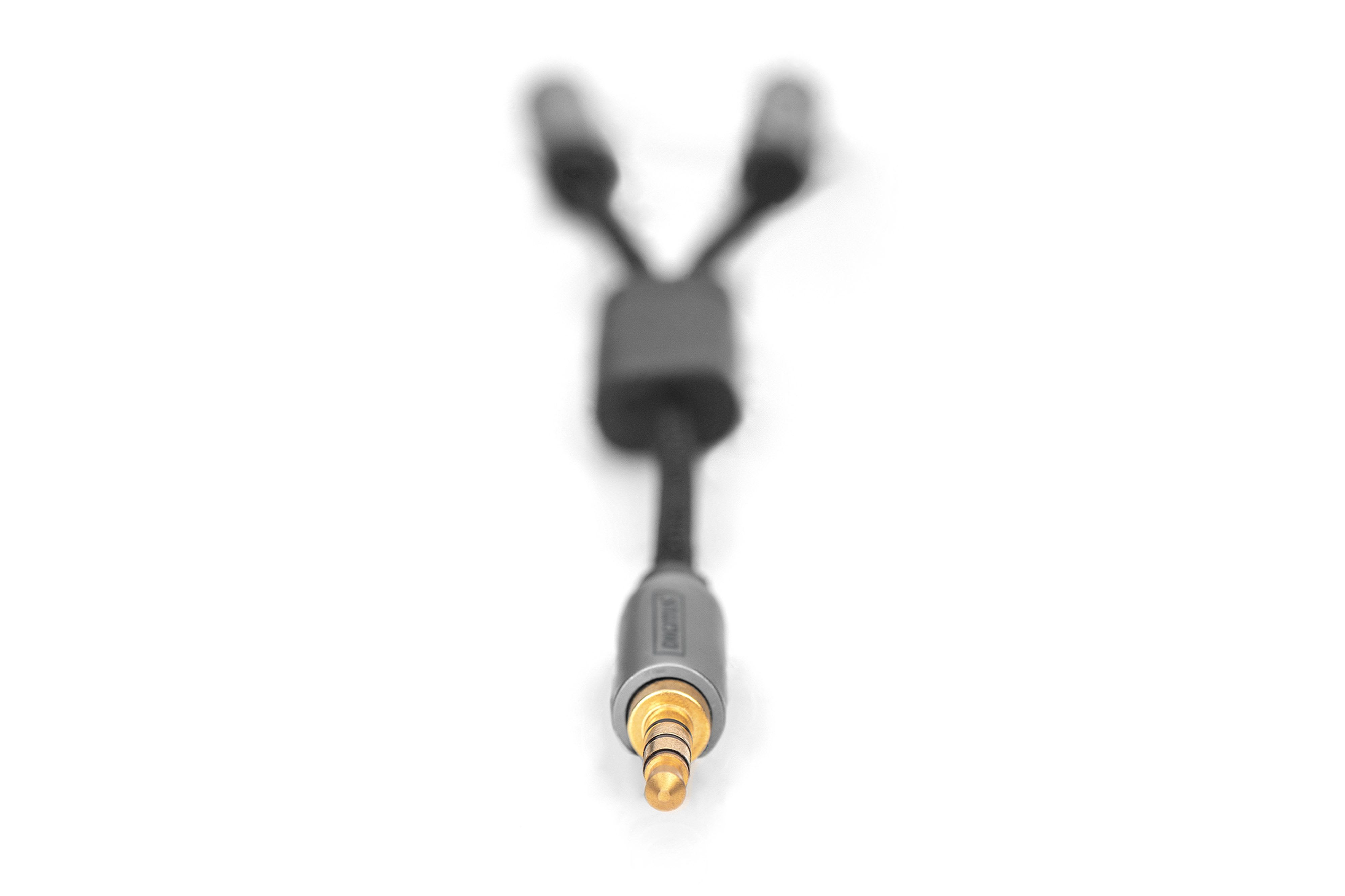 Assmann Electronic - Adaptateur Stéréo 3,5 mm, M vers 2x F Gaine alum., plaqué or, tresse nylon 0,2 m - DB-510320-002-S