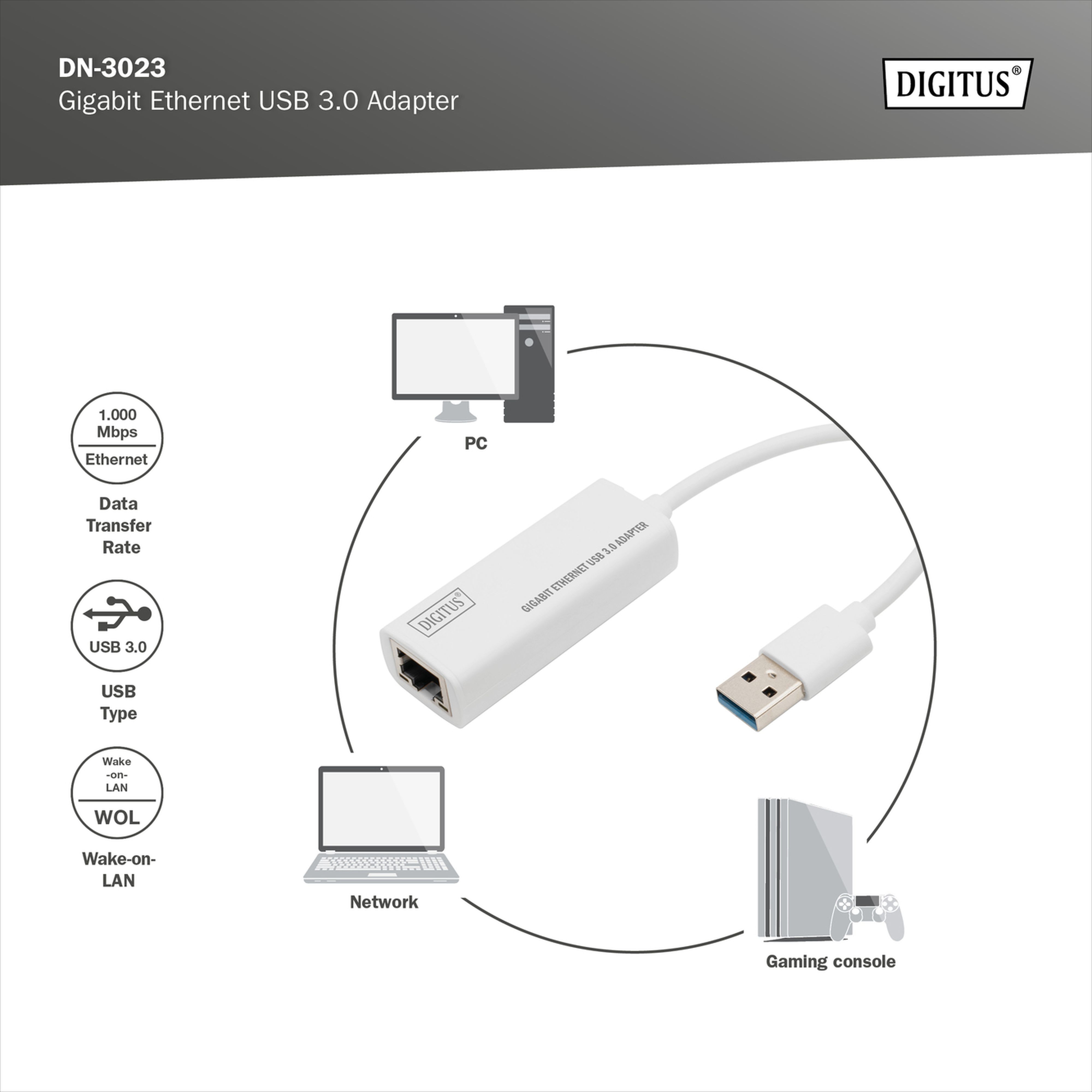 Assmann Electronic - Adaptateur USB 3.0 vers Gigabit Ethernet USB-A mâle, 10/100/1000 Mbps, USB 3.0, - DN-3023