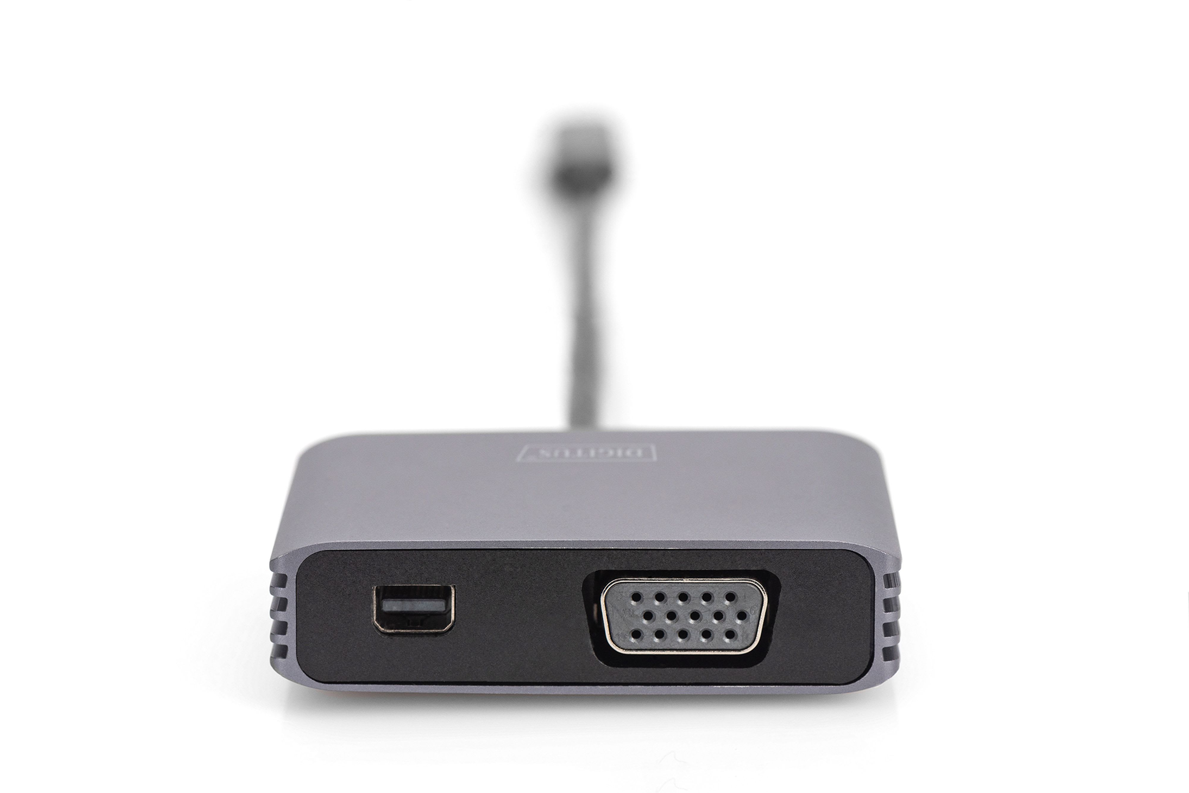 Assmann Electronic - Adaptateur USB C - miniDP/VGA 20cm 4K/30 Hz argent boîtier aluminium - DA-70825