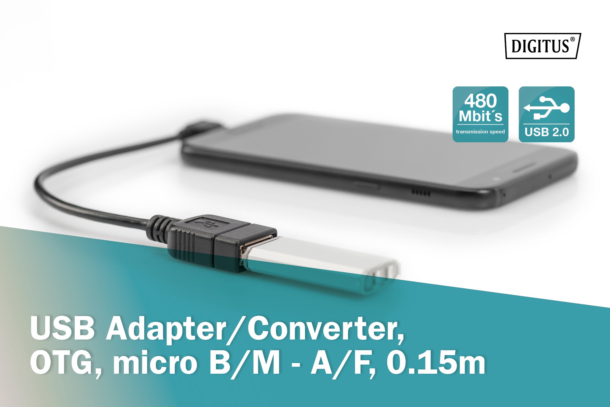 Assmann Electronic - Adaptateur USB2 OTG micro B M - A F 0.15m conforme USB2 angle droit noir - AK-300313-002-S